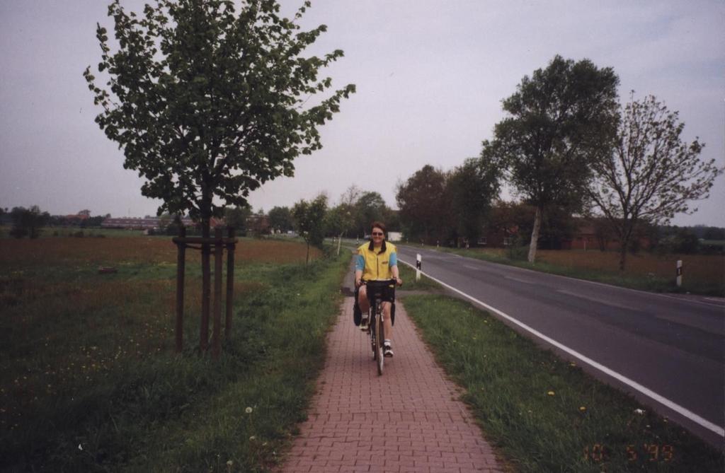 MühlentourEmden - EmdenTag 3: Norden Norddeich - Esens BensersielDie Welt ist klein... Nach dem Frühstück ging es gut gestärkt um 9 Uhr 20 los. Das packen der Fahrräder klappte täglich besser, wir hatten mittlerweile Routine darin. Das Wetter war vielversprechend und deshalb fuhren wir in kurzen Radlerhosen. Eine gute Investition war auch die neue Weste, die ich mir extra für die Tour gekauft hatte. Nach kürzester Zeit waren wir in Norden und fanden auf Anhieb den Einstieg auf die Mühlenroute. Alles lief wie am Schnürchen. Das einzige Problem bei Hildegard war, dass sie Schmerzen in den Handgelenken hatte, obwohl sie ganz normal mit den Beinen trampelte und die Pedale nicht mit den Händen betätigte. Sie fuhr mit dem fremden Rad etwas verkrampft und außerdem waren die Griffe sehr hart. Ich besorgte für das Rad neue Griffe und Hildegard für die Hände Bandagen. Danach ging es etwas besser. Unser Lunchpaket stellten wir in einem Supermarkt zusammen. Der Verlauf der Tour war insgesamt sehr schön, doch die Ostfriesen sparen oft an den Hinweisschildern, obwohl die Strecke erst im vorigen Jahr eröffnet wurde. Ohne Radkarte wäre man verraten und verkauft. Als wir einmal einen kurzen Stopp machten, flitzten die beiden Damen aus Greetsiel vorbei. Es hätte mich damals nicht gewundert, wenn sich unsere Wege noch mal kreuzen würden. In Utarup hatten wir beide ein dringendes menschliches Bedürfnis, doch leider fanden wir das angekündigte Gasthaus nicht. Etwas ratlos standen wir an einer Wegkreuzung und schauten auf unsere Karte. Vor einem Haus stand eine Frau. Hildegard ging hin, um sie nach dem Weg zu fragen. Das Gasthaus befand sich leider im Nachbarort und der lag nicht auf unserem Weg. Freundlicherweise bot uns die Frau an, ihre Toilette zu benutzen. Hildegard ging zuerst, danach ich. Als ich aus dem Haus kam unterhielten sich die Beiden und hatten anscheinend großen Spaß. Es stellte sich heraus, dass die Familie mehrere Ferienhäuser besaß und dass Hildegard vor einigen Jahren schon mal mit dieser Frau telefoniert hatte. Die Welt ist klein. So was erlebt man nur auf einer Radtour. Der weitere Weg war streckenweise abenteuerlich. Ein Trampelpfad von 30 cm Breite verlief direkt neben einem schmutzigen Kanal. Zum Glück gingen wir nicht baden. Im hohen Norden sind auch gepflasterte Wege sehr beliebt. Leider wurde der Unterbau vergessen, so das jeder Pflasterstein anders liegt, besonders in der Höhe. Das tut den Handgelenken, dem Po, sowie dem Fahrrad besonders gut. Wir schafften es jedoch bis Esens-Bensersiel. Mit Hilfe der Kurverwaltung fanden wir ein schönes Zimmer. Nach einer Runde durch den Ort, einer Pizza, vorher einer Dusche, erholten wir uns zusehends.