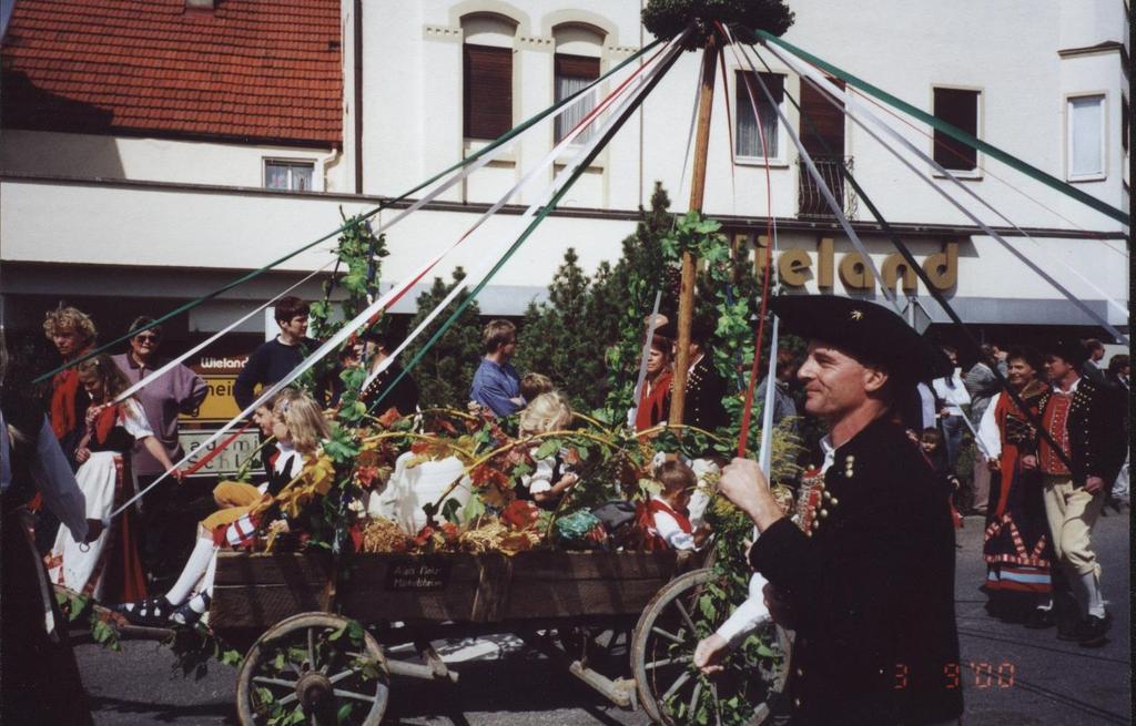 Tauber - AltmühlwegWertheim - RegensburgTag 2: Lauda Königshofen - Rothenburg o. d. T."Kärwe"... Nach einem guten Frühstück und der Frage unseres überkorrekten Wirts, ob wir schon bedient wären, ging es gegen 10 Uhr 20 los. Leider passierte uns in der Hektik des Aufbruchs ein gravierender Fehler. Wir vergaßen das Hotel und das Ortsschild zu fotografieren. Das hatten wir nach Möglichkeit seit der ersten Radtour gemacht. Den Radweg zu finden war kein Problem, wobei die Bezeichnung liebliches Taubertal nicht immer zutraf. Lieblich war die Gegend zwar, an der Tauber sind wir auch oft entlang gefahren, aber die Bezeichnung Tal traf oft nicht zu. Es ging sehr oft rauf und runter. Rauf war eine schweißtreibende Angelegenheit. Durch unser gutes Training und die gute Gangschaltung gelang es uns auch meistens die Anstiege fahrender Weise zu bewältigen. Ab und zu machten aber unsere Beine schlapp und wir mußten schieben. In Elpersheim füllten wir unsere Kraftreserven mit Kakao und Laugenstangen wieder auf. Pünktlich um 13 Uhr 30 zum historischen Umzug "Kräwe", erreichten wir Weikersheim. Es war ein langer Umzug, bestehend aus Fußgruppen, Pferdefuhrwerken und Musikgruppen. Er umfasste 42 verschiedene Gruppen und geht auf die Weihe der Stadtkirche St. Georg zurück (erbaut 1419-1425) Es ist ein jährliches Volksfest und erinnert an die Handwerker und Künstler, die die Kirche, das Schloss und andere bedeutende Bauwerke der Stadt errichtet haben. Es war ein wunderschöner bunter Zug, an der Groß und Klein teilnahmen. Bei strahlendem Sonnenschein war die ganze Stadt auf den Beinen. Es wimmelte von Menschen. Nach diesem prächtigen Schauspiel war es regelrecht erholsam weiter zu radeln. Bis kurz vor Rothenburg ging es in gewohntem Rhythmus weiter. Mit Tempo 4-8 rauf und mit Tempo 30-40 runter. Der einzige Nachteil dabei ist, man kann nicht nebeneinander herfahren und sich unterhalten. Wo wir beide doch so schweigsam sind. Vor Rothenburg kam es dann noch mal knüppeldick. Es ging (geschätzt) drei Kilometer nur rauf. Man konnte nur noch schieben und das mit vollbepackten Rädern. Dann kommt schon mal der Gedanke auf: "Warum tun wir uns so etwas an?" Gegen 18 Uhr waren wir dann am Ziel. Die Mühe hatte sich gelohnt. So toll und so groß hatte ich mir Rothenburg nicht vorgestellt. Wir waren regelrecht überwältigt. Wir bekamen noch etwas vom Ende eines historischen Stadtfestes mit, die mehrmals im Jahr abgehalten werden. Wir faden schnell unser vorgebuchtes Quartier. Es lag mitten im Stadtkern. Wir wohnten in einem stilecht restaurierten Haus aus dem 15. Jahrhundert. Ein Teil der Einrichtung war auch schon sehr alt. Nachdem wir den Reisestaub abgewaschen hatten, machten wir noch einen kurzen Rundgang über den Marktplatz und gönnten uns ein gutes Essen.