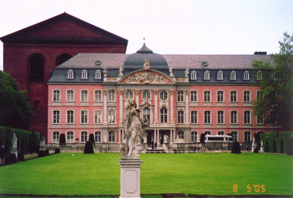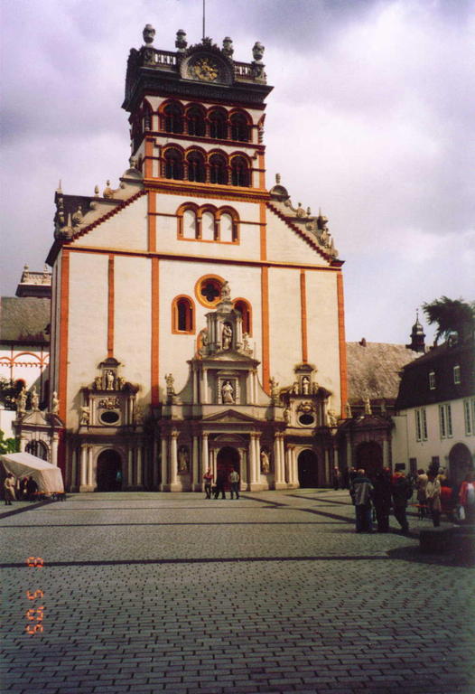 MoselradwegPerl - Koblenz - KrippTag 2: Nittel - Trier - 08.05.2005Ein tolles Konzert... Unser Zimmer befand sich unter dem Dach, mit einem Dachfenster schräg über dem Bett, somit konnten wir direkt beim Aufwachen erfreut feststellen, daß es nicht regnete. Nach einem langen, opulenten Frühstück ging es erst gegen 10.30 Uhr los. Der Weg verlief überwiegend direkt an der Mosel entlang. Auch heute fuhren wir nur auf der deutschen Seite, d. h. am Nordufer entlang. Es war wieder recht kalt und zeitweise auch naß. Wir wechselten laufend unsere Oberbekleidung, Regenjacken und Hosen an und kurze Zeit später wieder aus. Wir hatten diesmal auch an unsere kälteempfindlichen Körperstellen gedacht. Hildegard hatte eine warme Mütze dabei und ich ein Paar Wollhandschuhe. Es hat schon gute Gründe, warum wir mit Gepäck fahren und uns nicht die Koffer hinterher tragen lassen. In Konz überquerten wir die Saar und schossen einige Erinnerungsfotos. Es war uns zwar von Bekannten nahegelegt worden, auf jeden Fall ein Stück die Saar entlang zu radeln und uns Saarburg anzuschauen, aber leider hatten wir nur eine Woche zur Verfügung und wir wollten uns auch nicht abhetzen. Es folgen ja hoffentlich noch viele Radtouren. Recht zügig erreichten wir Trier, die älteste Stadt Deutschlands. Wenig später waren wir an der Matthiaskirche. Es war Pilgerzeit und es „knubbelten“ sich viele Menschen auf dem Vorplatz. Deshalb beschlossen wir, vor der Besichtigung erst mal unser Gepäck zu „entsorgen“ und ohne Ballast zurück zu kommen. Laut Wegbeschreibung lag unsere Unterkunft in der Nähe dieser Kirche auf einem Berg, im Ortsteil Marienhof. Wir waren ziemlich zuversichtlich, daß wir nach wenigen Minuten unser Ziel erreichen würden, doch der Weg zog sich über ca. 5 km kontinuierlich den Berg hinauf. Das hieß: wandern unter erschwerten Bedingungen. Ziemlich abgekämpft und durchgeschwitzt erreichten wir gegen 13.30 Uhr unsere Pension. Da wir großes Gepäck dabei hatten, bekamen wir sogar eine kleine Ferienwohnung im Souterrain und konnten uns ungestört ausbreiten. Nach der dringend erforderlichen Dusche machten wir uns mit dem Bus auf den Weg in die Stadt. Unser Besichtigungsprogramm war ziemlich umfangreich, doch haben wir alles, was wir uns für heute vorgenommen hatten, angesehen und einen groben Überblick von Trier erhalten. Zuerst besuchten wir die Matthiaskirche, in der sich das Grab des Apostels Matthias befindet. Es ist das einzige Apostelgrab nördlich der Alpen und daher ein vielbesuchter Wallfahrtsort. Dort wurden wir sogar schon für Fußpilger gehalten. Ob wir wirklich so mitgenommen aussahen? Anschließend gingen wir am Moselufer entlang in Richtung Innenstadt. Um einem heftigen Regenschauer zu entgehen, flüchteten wir in ein Cafe und stärkten uns mit Kaffee und Kuchen. Danach besuchten wir die Römische Palastaula, die wahrscheinlich um das Jahr 310 entstand. Direkt daneben befindet sich der kurfürstliche Palast aus der Zeit des Rokokos. Wir gingen durch den wunderschönen Park und gelangten zu den Ruinen der Kaiserthermen. Leider reichte unsere Zeit nicht, um sie in Ruhe anzusehen. Anschließend gingen wir zum Viehmarkt, auf dem sich in einem großen Glasgebäude Ausgrabungen aus der Römerzeit befinden. Auch dort sahen wir uns die Überreste der römischen Baukunst nur von außen an. Wenig später kamen wir an einem sehr aufwendig gestalteten Brunnen vorbei, der mit Darstellungen von verschiedenen Handwerksberufen gestaltet war. Als nächstes gingen wir über den sehenswerten Hauptmarkt zum Dom. Wir finden es sehr unpassend, während eines Gottesdienstes durch eine Kirche zu laufen und deshalb nahmen wir noch an der abendlichen Vesper teil. Danach bewunderten wir den Dom. Er macht auf den ersten Blick einen recht schlichten Eindruck, aber bei genauerem Hinsehen entdeckt man viele Kostbarkeiten. Im hinteren Teil des Gebäudes befindet sich ein riesiges Taufbecken, das die Ausmaße einer Badewanne besitzt. Sie war mir von meinem ersten Besuch vor einigen Jahren noch in besonderer Erinnerung. Die Orgel, die fast wie ein Schwalbennest an einer Säule klebt, ist ebenfalls ein Kunstwerk für sich. Das Chor hat eine außergewöhnliche Tiefe. Man kann diesen Dom schlecht beschreiben, man muß ihn selber ansehen! Leider war auch dafür unsere Zeit zu kurz bemessen und außerdem war auch nicht alles zugänglich. Trotzdem gab es für uns an diesem Tag noch eine ganz besondere Überraschung. Der niederländische Künstler Boudewijn Zwart gab ein Konzert auf seinem reisenden Glockenspiel. Das Instrument bestand aus 50 Bronzeglocken mit einem Gesamtgewicht von 2800 kg. Es war im Mittelgang des Doms aufgebaut. So etwas hatten wir noch nie gesehen oder gehört. Es war ein einmaliges Erlebnis. Im Wechsel dazu spielte der Domorganist Josef Still auf der Orgel. Das Konzert dauerte etwa 1 ½ Stunden. Die Kirche war bis auf den letzten Platz gefüllt. Alle waren sehr beeindruckt. Danach fand noch ein Glockenläuten von allen Kirchenglocken der ganzen Stadt statt, die aufeinander abgestimmt sind. Leider war es lausig kalt und wir hatten Hunger. Wir gingen noch zur Porta Nigra und anschließend zurück zum Markt. Dort ließen wir bei einem guten Essen den Abend ausklingen. An diesem Tag hatten wir viele Eindrücke gesammelt und waren uns einig, daß es sich lohnt, noch mal für ein paar Tage nach Trier zurück zu kommen und alles in Ruhe und intensiv anzuschauen. Vielleicht ist dann ja auch das Wetter etwas freundlicher.