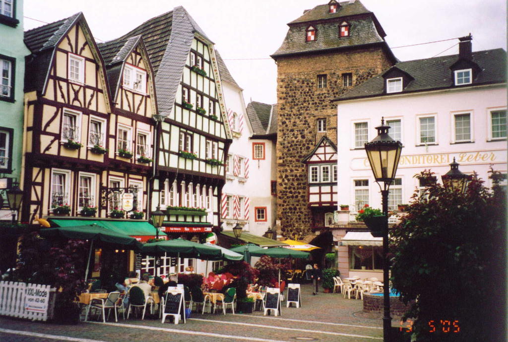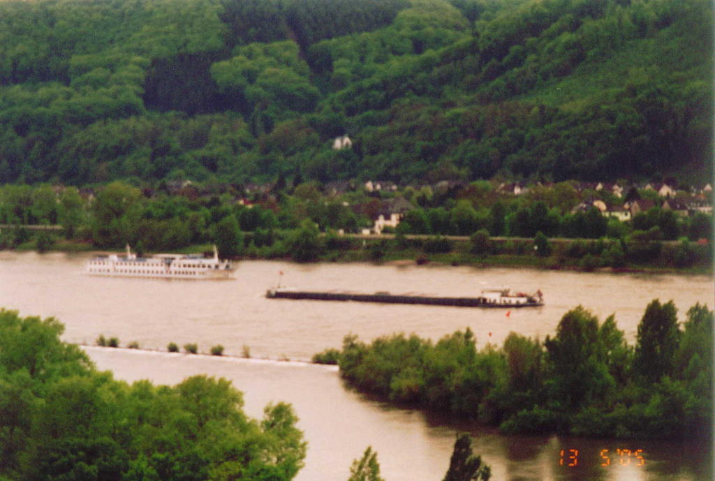 MoselradwegPerl - Koblenz - KrippTag 7: Koblenz - Kripp - 13.05.2005Rheinreise... Unser Wecker schellte heute eine Stunde früher, da die Frühstückszeit bis 9 Uhr begrenzt war. Das Frühstücksbuffet war gut und sehr umfangreich. Die Hotelchefin war sehr freundlich und kümmerte sich nett um ihre Gäste. Wir hatten sie am Vorabend nur kurz gesehen. Ihr Ehemann war uns am Abend schon positiv aufgefallen. Er hatte einen großen Teil unseres Gepäcks nach oben geschleppt. Kurz nach 9 Uhr starteten wir dann zu unserer Rheintour. Wir fanden schnell den richtigen „Ausgang“ aus Koblenz. Wir fuhren über die Pfaffendorfer Brücke auf die rechte Rheinseite. Nach den letzten Fotos von unserm alten Kaiser gelangten wir zügig bis zur A 48 Bensdorf - Neuwied. Hier waren die Radwegschilder plötzlich verschwunden und wir hatten das dumme Gefühl gleich auf der Autobahn zu landen. Da wir aber nicht im Radio erscheinen wollten, machten wir kehrt und suchten unser Glück in der Innenstadt. Als wir das Schild Rheinstraße sahen, gab es für uns kein Halten mehr. Der Weg endete nach einer flotten Abfahrt jedoch in einem Industrie und Bahngelände. Irgendwann gelangten wir dann doch noch auf den rechten Weg. Er führte meist in Sichtweite am Rhein entlang. Landschaftlich war es hier aber nicht so idyllisch wie an der Mosel. Auf dem Wasser herrschte reger Schiffsverkehr. Schon viele km im Voraus sahen wir das AKW Mülheim-Kärlich. In Neuwied machten wir direkt am Rhein unsere Mittagspause mit Brötchen und Joghurt. Ein Schwan leistete uns dabei Gesellschaft. Er war so zahm, daß er fast aufs Fahrrad stieg. Wir fuhren dann weiter bis Leutersdorf. Dort machten wir eine Kaffee- und Pippipause. Danach schafften wir dann auch den Anstieg vor Hammerstein. Wegen der überladenen Fahrräder natürlich schiebend. Weiter ging es dann, ohne anzuhalten, durch den ziemlich verrufenen Ort Bad Hönningen. Laut Hildegards Aussage kleben hier die Parkbänke ( hat sie aber auch nur vom Hörensagen ). Unbehelligt erreichten wir gegen 14.30 Uhr Linz. Zunächst stärkten wir uns mit einem dicken Eis. Dann versuchten wir ein erschwingliches Zimmer zu bekommen. Privatpensionen gab es nur ab 200 Höhenmetern und Hotels waren entweder besetzt oder für unseren kleinen Geldbeutel zu teuer. Also setzten wir mit der Fähre auf die andere Rheinseite über und versuchten unser Glück in Kripp. Wir fanden auch etwas; nicht gut, aber dafür trotzdem teuer. Diesmal aber wieder mit Dusche und WC. Nachdem wir diese benutzt hatten, fuhren wir nochmals mit der Fähre nach Linz. Gemütlich schlenderten wir durch den schönen Ort und ließen den Abend mit Pizza und Lasagne ausklingen. Wir hofften nur, es klappt mit dem Schlafen. In Kripp war Kirmes und das Festzelt stand dummerweise nur 50 Meter Luftlinie von unserem Hotel entfernt. Wie man`s macht, macht man’s falsch.