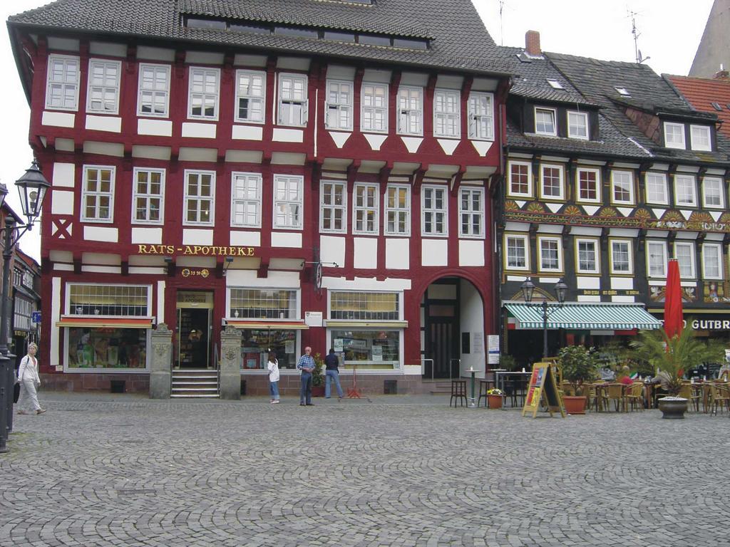 LeineradwegLeinefelde - Verden a.d. AllerTag 3: Göttingen – Freden - 08.05.2006Schönes Fachwerk... Das Frühstücksbuffet war ausgezeichnet und so starteten wir gut gestärkt und gut gelaunt gegen 9.30 Uhr unsere Tour. Das Wetter war wieder schön, so daß wir wieder Beine und Arme zeigen konnten. Den Leineradweg fanden wir schnell wieder. In Bovenden deckten wir uns mit Reiseproviant ein. Nun konnten wir zumindest nicht wegen Hungerast vom Rad fallen. Danach ging es zügig weiter. Unser Mittagspicknick beschlossen wir, an der Nordheimer Seenplatte einzunehmen. Dort wurde Hildegard fast von zwei kläffenden Kampfdackeln angefallen; je kleiner, desto frecher. So richtig idyllisch war es dann dort auch wieder nicht. Viele Besucher hatten ihren Verpackungsmüll einfach liegen lassen und außerdem rauschte die A7 über unsere Köpfe hinweg. Nach dieser Pause ging es dann weiter bis Einbeck. Eigentlich wären wir an der Stadt vorbeigefahren, aber wegen fehlender WCs am Wegesrand, machten wir dort eine Kaffee und Kuchenpause. Das war auch gut so, denn sonst hätten wir diese wunderschöne Fachwerkstadt glatt verpaßt. So viele schöne reichverzierte Fachwerkhäuser habe ich noch selten und schon gar nicht so gehäuft in einer Stadt gesehen. Anschließend fuhren wir zügig einige km über eine Landstraße ohne Radweg. Die Landschaft hatte sich gegenüber der ersten beiden Tage etwas verändert. Die Hügel waren etwas flacher und die Felder kleiner geworden. In Thüringen gab es noch die riesigen Felder aus der Zeit der LPGs. Auf dem Fahrrad hat man ein ganz anderes Gefühl für die Natur als im Auto. Alle Eindrücke sind viel intensiver. Wir waren immer wieder vom Gelb der Rapsfelder und von den blühenden Bäumen und Sträuchern begeistert. Zu Hause hatten wir befürchtet, daß wir viele Steigungen zu bewältigen hätten. Obwohl die Karte diesbezüglich ihre Markierungen hatte, waren wir beim Fahren angenehm überrascht. Wir mußten kaum schieben und absteigen. Erst kurz vor unserem Ziel in Freden mußten wir uns noch mal kräftig anstrengen. Gegen 17.15 Uhr erreichten wir unser Hotel. Es gibt doch ziemliche Unterschiede zwischen den einzelnen Häusern, wenn auch die Preise fast identisch sind. Nach dem Abendessen wollten wir noch etwas durchs Dorf bummeln, aber besondere Sehenswürdigkeiten konnten wir nicht entdecken und somit begnügten wir uns mit einem Ausflug zum Briefkasten. Danach gingen wir frühzeitig zu Bett.