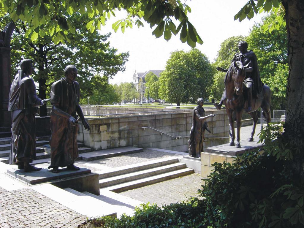 LeineradwegLeinefelde - Verden a.d. AllerTag 5: Hannover - 10.05.2006der rote Faden.. Für heute hatten wir eine ausgiebige Stadtbesichtigung eingeplant und somit hatten unsere Fahrräder heute Ruhetag. Gegen 10.30 Uhr machten wir uns zu Fuß auf den Weg in die Innenstadt. Auf dem Weg zum Bahnhof kamen wir gleich an einer Kuriosität vorbei. Unter einer Brücke „klebten“ drei Autos mit den Rädern nach oben. Der Bahnhof selbst wirkte imposant. Auf dem Vorplatz befand sich ein Reiterstandbild. In unmittelbarer Nähe war die Touristeninformation untergebracht. Dort besorgten wir uns zunächst einen Stadtplan. Bevor wir aber mit der eigentlichen Stadtbesichtigung loslegten, machten wir einen Bummel durch den Kaufhof. Danach folgten wir dem roten Faden durch die Stadt. Der rote Faden ist wörtlich zu nehmen: auf dem Boden ist mit roter Farbe eine Linie angebracht. Wenn man ihr folgt, kommt man an vielen wichtigen Sehenswürdigkeiten der Stadt vorbei. Ich hatte mir im Vorfeld wenig Gedanken über Hannover gemacht. Für mich war es nur eine bekannte Messestadt und die Stadt der Expo 2000. Ich war angenehm überrascht. In der Stadt herrschte eine lebhafte Atmosphäre. Die Leute tummelten sich auf den Straßen und Plätzen, man hatte aber nicht das Gefühl von Großstadtstreß. Autoverkehr nahm man nur am Rande wahr. Die Stadt machte auf uns einen hellen und freundlichen Eindruck. Markante, alte Gebäude und moderne Bauten harmonierten gut miteinander. Besonders gut hat uns das Rathaus gefallen. Es ist ein Prachtbau, der Anfang des letzten Jahrhunderts errichtet wurde. Es macht schon von außen einen imposanten Eindruck. Zudem besteht die Möglichkeit, mit dem einzigen Schrägaufzug Deutschlands, auf den Turm zu gelangen. Von dort oben hat man einen wunderbaren Blick auf die Stadt. Nachdem wir das Panorama ausgiebig bewundert und fotografiert hatten, gingen wir durch den schönen Marschpark mit dem Marschweiher zum Marschsee. In einem Restaurant am Seeufer aßen wir einen kleinen Imbiß. Nach dieser Pause ging die Stadtbesichtigung weiter. Der Weg führte unter anderem am Leineschloß vorbei in die Altstadt. Danach gingen wir gemütlich durch die Fußgängerzone. Dort ließen wir es uns gutgehen und aßen beide ein wirklich gutes Steak Danach besorgten wir uns am Bahnhof schon mal die Rückfahrkarten für den kommenden Samstag. Für heute waren wir genug gelaufen und weil wir uns vorher schon über das Kinoprogramm informiert hatten, gingen wir dann in den Film: „Wie im Himmel.“ Er versetzte uns für einige Stunden in ein kleines schwedisches Dorf. Er hat uns beiden sehr gut gefallen. Um unsere etwas aufgewühlten Gedanken wieder abzukühlen, aßen wir dann anschließend einen leckeren Eisbecher. So war wieder ein rundum schöner Urlaubstag zu Ende. Daß das Wetter wieder schön war, braucht man eigentlich gar nicht extra zu erwähnen.