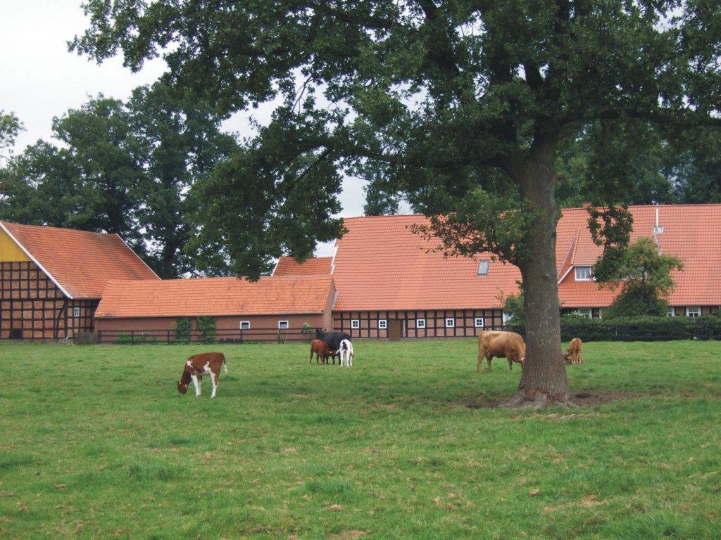 Hase-Ems-RadwegBrochterbeck - Meppen - BrochterbeckTag 2: Bramsche - Essen (Oldenburg) - 19.08.2007Haseüberfall... Aufgrund meiner Blessuren hatte ich schlecht geschlafen, war aber froh, daß ich meine Arme und Beine gut bewegen konnte und somit der weiteren Radtour nichts im Wege stand. Das Frühstück zog sich sehr lange hin, da unser Wirt und Klaus immer mehr Gemeinsamkeiten entdeckten und beide ausgiebig ihre Sammelleidenschaften beschrieben. Zum Glück hatten wir keine Eile und zudem war die Unterhaltung wirklich nett. Wir hatten nicht das Gefühl Fremde zu sein; so möchte man immer aufgenommen werden! Bevor wir gegen 10.30 Uhr den Gasthof verließen, war schon eine Regenschauer herunter gekommen. So hatte sich die lange Unterhaltung noch zusätzlich gelohnt. Das Wetter war leider nicht so sonnig wie am Vortag. Wir waren aber froh, daß es nicht regnete oder windig war. Die Temperatur war zum Radfahren recht angenehm. Ich konnte sogar in kurzer Hose fahren und dadurch mein aufgeschrammtes Knie etwas schonen. Wir fuhren nicht immer auf dem Hase-Ems-Weg, sondern ab und zu die parallel dazu verlaufenden Radwanderwege. Sie waren alle gut ausgeschildert und man konnte immer wieder problemlos den Hauptweg erreichen. Wir fuhren am Alfsee vorbei, von dem wir aber enttäuscht waren. Er machte auf uns einen sehr künstlich angelegten, kahlen Eindruck. Ingesamt gefiel uns die Gegend aber gut. Der Weg verlief meist auf geteerten Wirtschaftswegen oder ruhigen Landstraßen. Wir kamen an vielen, großen, alten, gut erhaltenen Gehöften vorbei. Daß Niedersachsen ein Pferdeland ist, läßt sich nicht verleugnen. So viele Pferde, Reiterhöfe und große Reithallen sieht man sonst nicht. Was uns auch gut gefiel, waren die vielen Obstbäume an den Wegrändern. Sie waren oft regelrecht mit Pflaumen, Äpfeln oder Birnen überladen. Die Landwirtschaft hat hier anscheinend noch einen hohen Stellenwert. Gemüseanbaubetriebe oder Gärtnereien, wie am Niederrhein, haben wir nicht gesehen. Die Dörfer machen noch einen bodenständigen Eindruck. Sie sind sauber und gepflegt, aber nicht auf „modern“ herausgeputzt. Die heutige Tour verlief ruhig und war nicht anstrengend. Hier ist anscheinend noch nicht alles touristisch vermarktet. Um Punkt 12 Uhr machten wir auf einer gemütlichen Bank in Heeke ein Mittagspicknick. Danach ging es weiter bis Bersenbrück. Nachdem wir uns den Ortskern angesehen und einen Imbiß gegessen hatten, fuhren wir zügig in Richtung Quakenbrück. Wenige Kilometer vor dem Ort gelangten wir zur Überfallhase. Dieser merkwürdige Name hat folgende Bedeutung: die Hase verzweigt sich in viele Flußarme. Früher kam es dadurch häufig zu Überschwemmungen. Um die Stadt davor zu schützen, wird die Hase am Haseüberfall aufgestaut und läuft in einen Seitenarm über. Das ganze Gebiet ist durch die vielen Bäche und Gräben sehr sumpfig, aber auch sehr fruchtbar. Badbergen und Quakenbrück liegen im sogenannten Artland. Auf der Hase sahen wir auch ab und zu kleine Paddelboote oder größere Schlauchboote. Kurz vor dem Überfall gibt es ein Trainingsgelände für Wasserpolo. Diese Art Wassersport hatten wir bisher noch nicht life gesehen. Den Jungs schien es jedenfalls Spaß zu machen. Gegen 16 Uhr erreichten wir die Altstadt von Quakenbrück. Es gab wieder reichlich Fotomotive. Am Marktplatz, unter einem großen Sonnenschirm, warteten wir bei Kaffee und Kuchen einen Regenschauer ab. Anschließend machten wir per Fahrrad eine Stadtrundfahrt. Danach fuhren wir auf direktem Weg nach Essen, zu unserem tel. vorgebuchten Quartier. Der Gasthof war sehr groß und das Zimmer sehr schön, doch leider mußten wir zum Abendessen noch mal in die Stadt. Nachdem wir eine Pizza gegessen hatten, beschlossen wir den Tag bei einem Bier in einer kleinen Dorfkneipe.