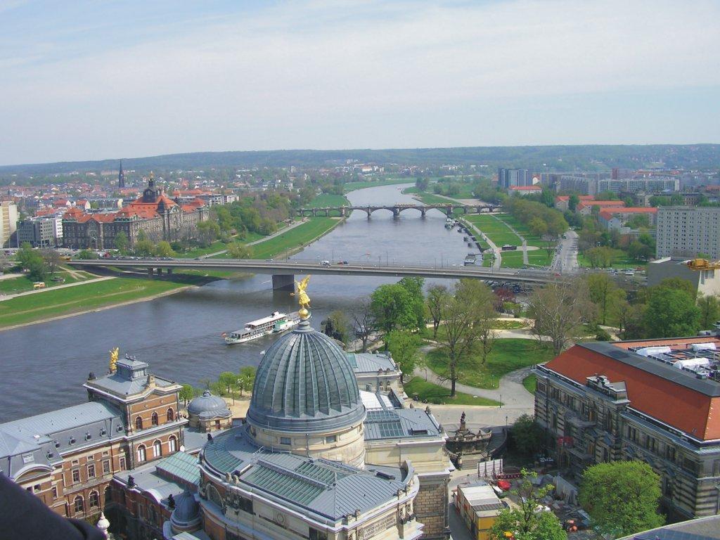 Elberadweg, Teil 1Bad Schandau - MagdeburgTag 4: Dresden - 28.04.2008Soweit die Füße tragen... Zur üblichen Zeit, um 8.30 Uhr saßen wir am Frühstückstisch. Heute hatten wir keine Eile. Gegen 10.30 Uhr fuhren wir mit der Straßenbahn in die Innenstadt. Bei Sonnenlicht fanden wir die Haltestelle in wenigen Minuten. Kurze Zeit später waren wir auch schon in der Stadt. Natürlich ging unser erster Weg wieder zur Frauenkirche. Wieder Erwarten brauchten wir nicht anzustehen oder Eintritt zu bezahlen. Es waren viele Besucher in der Kirche, sie war aber nicht überfüllt. Sie war wirklich sehr sehr schön. Helle Pastellfarben und ein prunkvoller Altarraum mit vielen Goldverzierungen und großen darüberstehenden Orgelpfeifen ließen den Raum freundlich und hell erstrahlen. Die Kirche ist ein Rundbau und, obwohl sie Platz für 1800 Menschen bietet, wirkt sie nicht übermäßig groß. Es gibt insgesamt fünf Emporen. Von dort ist der Blick sicherlich besonders schön. Dorthin gelangt man nur nach vorheriger Anmeldung und mit einem Führer. Es ist schon etwas ganz Besonderes, diese Kirche, die in den letzten Kriegsjahren völlig zerstört wurde, in dieser Pracht zu sehen. Vor ca. 8 Jahren habe ich sie von außen beim Wiederaufbau zum ersten mal gesehen. Sie ist ein wunderschönes Gotteshaus und für viele Menschen, nicht nur in Dresden, ein Sinnbild für Neuanfang. Nachdem wir uns die Kirche von innen angesehen hatten, wollten wir in jedem Fall noch die Aussichtsplattform über der Kuppel besteigen. 8€ Eintritt sind nicht preiswert, aber sie haben sich gelohnt. Zuerst fuhren wir einige Stockwerke mit einem Aufzug hinauf. Dann ging es über einen ansteigenden Gang immer höher hinauf. Dabei konnte man durch innen gelegene Fenster ins Innere der Frauenkirche sehen. Die letzten Meter führten über eine Eisentreppe nach draußen zur Kuppelspitze. Von hier hatten wir einen phantastischen Ausblick über Dresden, die Elbe und die Umgebung. Das Wetter war sonnig und klar und wir genossen das Stadtpanorama. Man hätte vielleicht auch von einem anderen Turm der Stadt eine ähnliche Aussicht gehabt, aber den Blick ins Kircheninnere beim Auf- und Abstieg hätten wir verpaßt. Nachdem wir die Frauenkirche verlassen hatten, gingen wir durch die Augustusstraße an der Ahnengalerie, dem sogenannten Fürstenzug vorbei. Es ist ein Wandfries auf dem 35 Herrscher zu Pferde aus dem Hause Wettin von 1127-1904 dargestellt sind; außerdem noch Adlige, Militärs, Künstler, Gelehrte und der Schöpfer und seine Gehilfen. Es besteht aus Meissner Kacheln und ist das größte Porzellanbild der Welt. Danach gingen wir weiter zum Schloßplatz und kamen an der Kath. Hofkirche und am Ständehaus vorbei. Wir gelangten dann zum Theaterplatz. Dort befindet sich auf der rechten Seite die berühmte Semperoper und geradeaus der Zwinger. So viele berühmte Gebäude so nah beieinander sind schon beeindruckend. Für den Zwinger nahmen wir uns sehr viel Zeit. Diese vielen Eindrücke kann man nicht wiedergeben. Alles, was wir sahen, war phantastisch. Heute besichtigten wir nur die Außenanlagen. Für morgen haben wir uns einige Museumsbesuche vorgenommen. Unsere Fotoapparate mußten wieder mal alles geben. Hildegard mußte an ihrer Kamera schon nach drei Tagen die Batterien austauschen. Die Zeit verging wie im Fluge und um 13.30 Uhr machten wir langsam schlapp. In einer Pizzeria füllten wir unsere eigenen Batterien wieder auf und gönnten unseren Füßen eine Verschnaufpause. Anschließend versuchten wir in die Semperoper zu gelangen. Leider gab es am Nachmittag keine Besichtigungsmöglichkeit mehr und auch am Folgetag war wegen Probe geschlossen. Schade, aber es gab ja noch einiges Andere zu sehen. Wir gingen ein Stück auf die Augustusbrücke, um die Silhouette der Stadt zu bewundern. Danach gingen wir über die Brühlschen Terrassen bis zum Park vor der Hochschule der bildenden Künste. Wir hatten einen weiten Blick über die Elbe und auf Dresden Neustadt. Nun machten wir uns auf die Suche nach dem Pulverturmkeller .Alfred, Hildegards Mann, hatte dieses Restaurant vor einigen Jahren mit Kollegen besucht und es Hildegard wärmstens empfohlen. Wir fanden es in unmittelbarer Nähe der Frauenkirche. Der Name war leicht irreführend. Wir hielten Ausschau nach einem Turm. Den gab es schon lange nicht mehr, sondern nur die Reste eines alten Kellers von einem früheren Pulverturm. Es war ein sehr uriges Restaurant. Wir fühlten uns in einen Rittersaal oder in eine alte Schloßküche versetzt. Die Räume waren rustikal eingerichtet und mit Gegenständen aus dem Mittelalter dekoriert. Wir tranken nur einen Kaffee. Da am Nachmittag kaum Gäste anwesend waren, konnten wir uns alles in Ruhe ansehen Für den Abend reservierten wir uns einen Tisch. Nach dieser kleinen Pause fuhren wir mit der Straßenbahn über die Carolabrücke auf die andere Elbseite. Vom Albertsplatz gingen wir zur Pfundsmolkerei. Es ist der schönste Milchladen der Welt. Wände und Decken sind mit farbigen Majolikafliesen der Firma Villeroy und Boch geschmückt. Es gibt auch heute noch die verschiedenen Molkereiprodukte zu kaufen. Nebenan besuchten wir noch kurz einen Senfladen. Anschließend wollten wir uns noch die Neustadt weiter ansehen, aber die vielen Punks und das ungepflegte und heruntergekommene Stadtbild ließen uns unsere Pläne ändern. Wir fuhren mit der Straßenbahn zurück bis zum Bahnhof und liefen dann an der Shoppingmeile vorbei zurück bis zur Altstadt. Pünktlich um 20 Uhr erreichten wir wieder den Pulverturmkeller. Zum Glück hatten wir einen Tisch reserviert. Das Restaurant war bis auf den letzten Platz gefüllt. Passend zur Einrichtung war das Personal in mittelalterliche Gewänder gekleidet. Gaukler und Musikanten unterhielten die Gäste. Das Essen war wie erwartet hervorragend. Unsere Heimfahrt verlief im Gegensatz zum Vortag unspektakulär. Wir hatten uns den Weg gemerkt und erreichten kurz nach 22 Uhr unsere kleine Ferienwohnung.