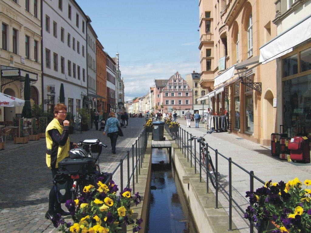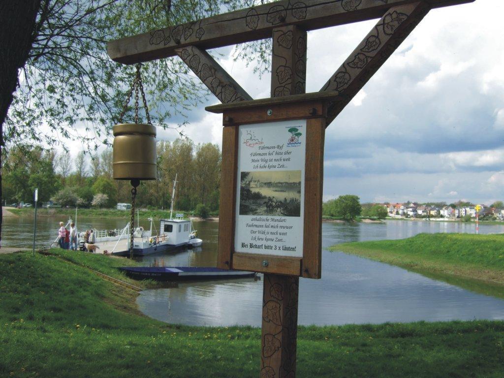 Elberadweg, Teil 1Bad Schandau - MagdeburgTag 8: Elster - Aken - 02.05.2008Plattfuß... Der Tag begann mit einem hervorragenden Frühstück. Es gab außer Brötchen / Brot, Marmelade, Käse und Wurst, einen Teller mit Gurken, Tomaten, Paprika und Radieschen; dazu kamen noch frische Erdbeeren, Bananenstückchen und Orangenscheiben. Bei so einem Start in den Tag, kann der nur schön werden! Das Wetter sah auch vielversprechend aus. Zunächst fuhren wir ein Stück unseren Radweg zurück zu einem Fahrradgeschäft, weil Hildegards Tacho streikte. Leider konnte der Fahrradhändler den Fehler nicht finden und so entschied Hildegard sich, einen neuen zu kaufen. Ohne Kilometerzähler macht eine Radtour keinen Spaß. Im Laden herrschte Hochbetrieb und weil wir anschließend in einem Supermarkt noch Speisen und Getränke kauften, verließen wir Elster erst gegen 10.30 Uhr. Leider hatten wir, wie am Vortag, kräftigen Gegenwind. Der Weg verlief durch viele Wiesen. Gegen 12 Uhr erreichten wir die Lutherstadt Wittenberg. Der Elberadweg führt mitten durch die sehenswerte Innenstadt. Auf dem Marktplatz, vor dem Rathaus und in Sichtweite der Stadtkirche, machten wir eine kurze Kaffeepause. Dabei kamen wir mit zwei Frauen ins Gespräch. Sie empfahlen uns schon heute ein Zimmer in Magdeburg zu buchen, da dort am Samstag ein wichtiges Fußballspiel stattfinden sollte und viele auswärtige Fans erwartet würden. Wir buchten dann auch gleich ein Zimmer und hatten somit eine Sorge weniger. Es ging weiter, an der berühmten Schloßkirche vorbei. Der Radweg war neu angelegt und führte in großen Schleifen entlang der Elbe durch eine Feuchtwiesenlandschaft. Er ließ sich gut befahren. Das Tempo wurde aber in den Ortsdurchfahrten oft durch grobes, unregelmäßiges Natursteinpflaster abgebremst. In Coswig setzten wir mit der Fähre auf die westliche Elbseite über. Bei der Überfahrt hatten wir einen schönen Blick auf das Schloß. Danach folgte eine 6 km lange, schnurgerade Straße bis zum Wörlitzer Park. Es ist eine über 100 ha große Parkanlage mit vielen Kanälen, Inseln, einzelnen Gärten und Wirtschaftsflächen. Sie entstand während der Regierungszeit des Fürsten Leopold III Friedrich Franz von Anhalt-Dessau ( 1758-1817). Er grenzt sich nicht von der umgebenen Landschaft ab, sondern bezieht diese mit ein. Leider reichte unsere Zeit nicht, den Park zu besichtigen. Wir machten jedoch in einem Gartencafe eine Kaffee- und Kuchenpause. Das hatte uns gut getan. Frisch gestärkt und ausgeruht fuhren wir weiter über einen schnurgeraden Damm. Danach folgte ein großes Waldgebiet. Ohne den Gegenwind ließ es sich hier wunderbar fahren. Leider lagen an vielen Stellen zerbrochene Flaschen, die am Vortag beim Vatertag einfach weggeworfen worden waren. Das muß doch nicht sein! Auf einem Feld, das gerade gepflügt wurde, stolzierten sieben Störche auf der Suche nach Futter umher. So was sieht man bei uns zu Hause nicht. Wir befanden uns mittlerweile ja auch im Biosphärenreservat Mittlere Elbe. Wir gelangten zur Mulde und überquerten sie auf einer gedeckten Holzbrücke. Das Wetter war etwas unbeständig. Mehrfach regnete es leicht; doch meist, wenn wir die Regensachen angezogen hatten, hörte es wieder auf. Als wir Großkühnau erreichten, wurde der Himmel doch sehr dunkel und in der Ferne hörte man Gewittergrummeln. Dann fing es auch heftig an zu regnen. Da wir bereits ein Zimmer in Aken reserviert hatten, entschlossen wir uns, erst zu Abend zu essen und dann weiter zu fahren. Wir fanden auch schnell einen schönen Gasthof und bekamen ein ausgezeichnetes Essen. Vorher riefen wir in der Pension an, damit unser Zimmer nicht anderweitig belegt würde. Am Nebentisch saß ein Ehepaar aus Utrecht, mit denen wir ins Gespräch kamen. Sie befuhren ebenfalls den Elberadweg, waren aber in Prag gestartet. Nach dem Essen wollten wir schnell die letzten 10 km unter die Reifen nehmen, stellten aber entsetzt fest, daß Hildegards Hinterrad platt war. Das hatte uns gerade noch gefehlt! Gemeinsam mit dem freundlichen Holländer suchten wir nach dem Loch im Reifen. Wir fanden nichts. Hatte sich da jemand einen Scherz erlaubt? Wir pumpten das Rad wieder auf und fuhren mit einem unguten Gefühl los. Zum Glück regnete es nicht mehr. Wir brauchten nicht nachzupumpen, aber die Schaltung spielte verrückt. Das werden wir morgen in einer Werkstatt überprüfen lassen. Erst gegen 21 Uhr erreichten wir unsere Pension in Aken.