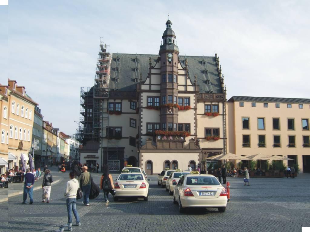 DeutschlandtourFlensburg - FüssenTag 12: Meiningen - Schweinfurth - 13.09.2008Herzklopfen... Nach dem Aufstehen ging mein erster Blick zum Fenster. Wie ist das Wetter? Es war trüb, aber zum Glück trocken. Nach dem Frühstück ging’s um 9 Uhr wieder weiter. Der Radweg war schnell gefunden und die letzten Kilometer an der Werra lagen vor mir. In Obermaßfeld bog ich vom Werraradweg ab. Es folgte dann erst mal eine lange Steigung. In Rentwertshausen ging der Weg in westlicher Richtung weiter. Es folgten dann mehrere rasante Abfahrten. Heute half der Wind kräftig mit. Er kam aus Nord-Ost und schob meist von hinten. Von Mellrichstadt aus gelangte ich zügig durchs Saaletal nach Bad Neustadt. Dort machte ich eine kurze Mittagspause. Anschließend hatte ich etwas Probleme, den Radweg zu finden. Ich verließ die Saale wieder und es ging weiter nach Münnerstadt. Die Altstadt bot einige schöne Fotomotive. Die grauen Wolken hatten sich im Laufe des Tages verzogen, es war nur recht kühl. Der weitere Weg führte sehr idyllisch durch ein fast menschenleeres Tal. Ich fuhr an der einsam gelegenen Marienwallfahrtskirche zum hl. Kreuz vorbei. Da gerade ein Gottesdienst stattfand, habe ich sie nur von außen angesehen. Mein Weg führte an einsamen Bauernhöfen vorbei und dann nur noch durch Wiesen und Felder. Rechts und links davon war Wald. Ich genoß die Fahrt bis plötzlich unvermittelt ein geparktes Auto am Weg stand. Aus den Augenwinkeln heraus sah ich, wie jemand etwas weiter entfernt im Wald verschwand. Da bekam ich ein mulmiges Gefühl. Es gab nur den einen Weg. Ich mußte an der Stelle vorbei, wo der oder die Unbekannte in den Wald gegangen war. Vielleicht war es nur ein Jäger oder Pilzsucher. Ich hatte Herzklopfen. Ich hielt an, um Klaus anzurufen. Dummerweise war er vorübergehend nicht erreichbar. Deshalb schrieb ich ihm eine SMS und teilte ihm die Autonummer mit, falls ich auf dem Weg verschollen wäre. So schnell es auf dem Schotterweg möglich war, passierte ich die unheimliche Stelle und gelangte wenige Minuten später auf eine Landstraße. Dort gab ich zu Hause Entwarnung. Es folgten einige lange, gerade Anstiege, an denen ich teilweise gelaufen bin. Die Abfahrten entschädigten wieder dafür. Bei dem hohen Tempo kam ein leichtes Motorradfeeling auf. Kurz vor Schweinfurth machte ich dann noch meine Wochenendeinkäufe. Da Samstag war, hatte die Touristeninformation leider geschlossen. Mit einem Unterkunftsverzeichnis klappte die Zimmersuche doch recht schnell. Diesmal war es sogar ein preiswertes Hotel. Es lag ziemlich zentral. Die Ausstattung war aber dem Preis entsprechend; aber ich wollte ja auch nur eine Nacht bleiben. Ein kurzer Bummel über den Marktplatz und die angrenzenden Straßen veranlaßte mich ebenfalls nicht zu großer Begeisterung. Einzig das Rathhaus war sehenswert, aber auf Grund von Bauarbeiten wurde es teilweise von einem Baugerüst verdeckt. Das Denkmal von Friedrich Rückert auf dem Marktplatz erinnerte mich an ein Gedicht aus meiner Schulzeit, das mir noch sehr präsent ist und das für mich immer eine große Bedeutung hatte: