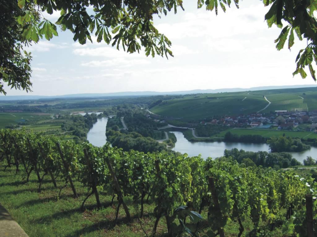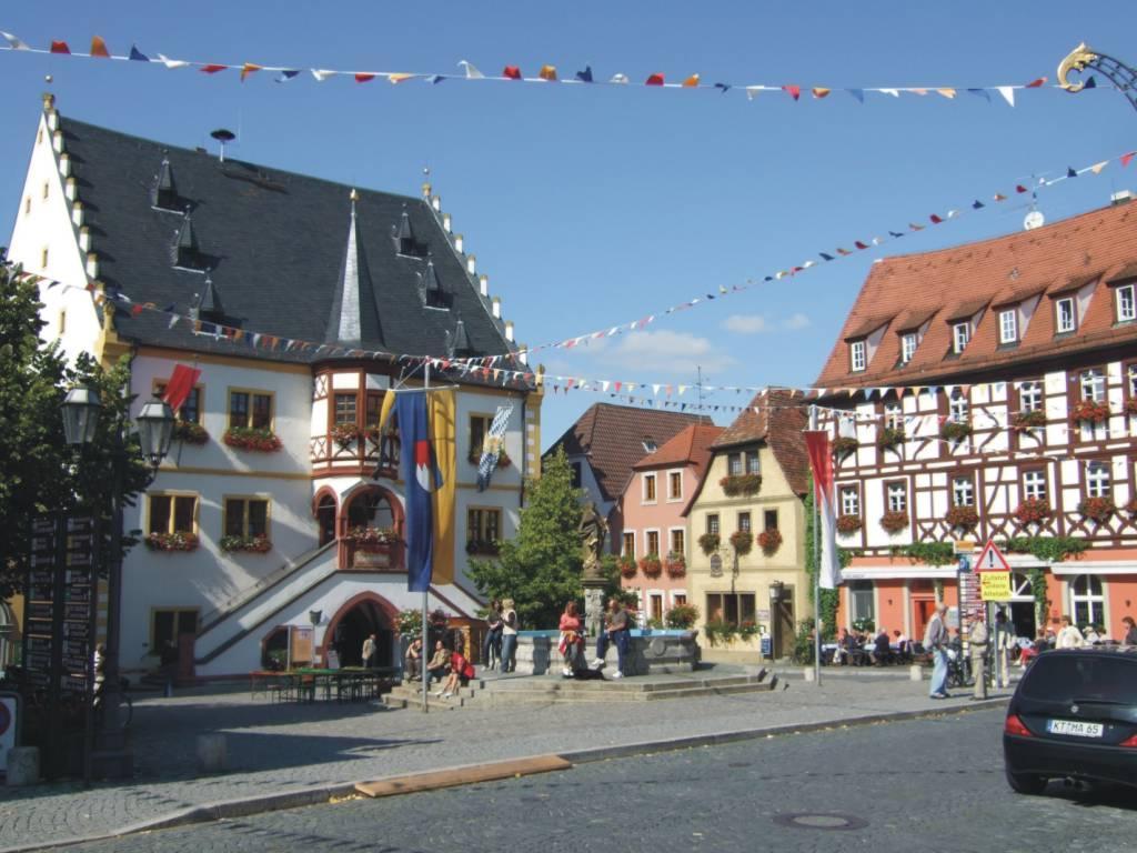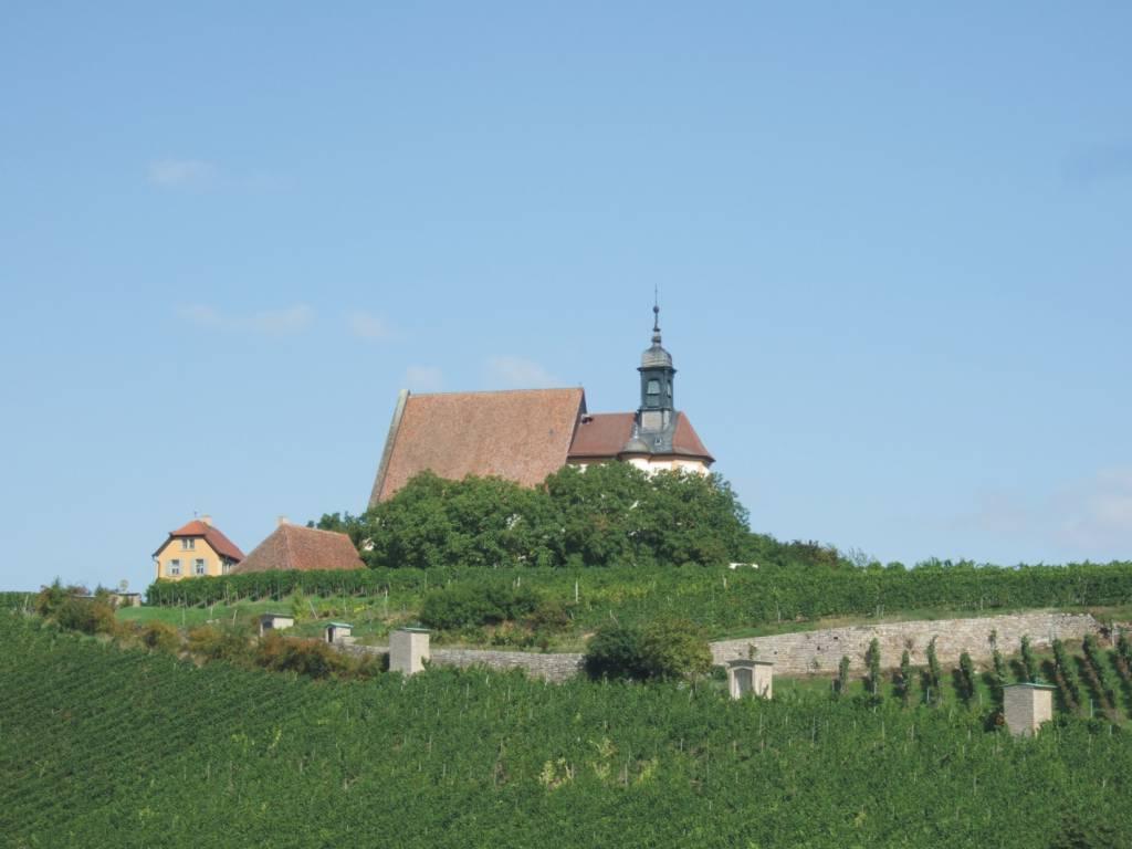 DeutschlandtourFlensburg - FüssenTag 13: Schweinfurth - Kitzingen-Albrechtshofen - 14.09.2008Sonntagsvergnügen... Heute wollte ich alles etwas geruhsamer angehen. Mir war klar, wenn ich so weiter machen würde wie bisher, wäre ich schon in einigen Tagen in Füssen. Dann müßte ich die Tage bis zur gebuchten Rückfahrt totschlagen. Sicherlich kann man in Füssen einiges Schöne unternehmen, aber es sollte ja in erster Linie eine Radtour werden, nach dem Motto: der Weg ist das Ziel. Am Anfang hatte ich oft die Befürchtung, die Tour in meiner geplanten Zeit nicht zu schaffen und jetzt war ich nach 11 Fahrtagen schon am Main. Bisher hatte ich auch noch nie das Verlangen, einen Pausentag einzulegen. Am Abend war ich zwar jedesmal müde, aber bis auf die ersten beiden Tage nie wirklich kaputt. Ich hatte vor der Tour nicht extra trainiert und war selbst erstaunt, wie gut es lief. Einiges war anders als auf den vorherigen Radtouren. Wenn man zu mehreren unterwegs ist, gibt es immer wieder Gründe, mal kurz anzuhalten; nicht nur zum Fotografieren, oder um eine reguläre Pause zu machen, sondern um irgend etwas am Gepäck, oder am Fahrrad oder, oder, nachzusehen. Das kommt bei jedem vor, aber mit mehreren Personen summieren sich die Zeiten und man ist länger unterwegs. Ich hatte vorher geglaubt, ich wäre alleine bedeutend schneller. Das war aber nur minimal. Dadurch aber, daß ich zügiger durchfuhr, schaffte ich oft unbeabsichtigt eine größere Tagesetappe. Leider hatte ich mir bisher wenig rechts und links des Weges angesehen. An diesem Tag habe ich erstmals später gefrühstückt und danach noch die Zeitung gelesen. Erst danach packte ich meine Taschen. Um 9.30 Uhr setzte ich meine Tour fort. Ich fuhr zuerst über die Mainbrücke. Der Weg verlief dann mehr oder auch mal weniger nah am Main entlang. Ich brauchte mich auch heute nicht anzustrengen, denn genau wie gestern hatte ich Rückenwind. Es war ein wunderschöner Herbsttag. Der Himmel war blau, mit einigen weißen Wolken, ein richtiger weiß-blauer Bayernhimmel. Dazu schien die Sonne, dennoch es war ziemlich kalt. Es waren schon am Morgen viele Leute unterwegs; morgens zuerst die Hundebesitzer, dann die Rennradfahrer und später die Sonntagsausflügler. In der Nähe von Volkach liegt die Wallfahrtskirche Maria im Weinberg, dort kamen auch noch Pilger dazu. Die kleine Kirche liegt sehr idyllisch zwischen den Weinbergen und ist schon von weitem zu sehen. Da war ich mal wieder zu bequem, um mit meinem Rad den Berg hochzufahren oder besser gesagt hochzuschieben. So habe ich die berühmte Riemenschneidermadonna nicht gesehen. Es war ein Genuß an den Weinbergen entlang zu fahren. Blaue und rote Reben lachten mich an. Die Weinberge waren nicht so steil, wie ich sie von der Mosel her kenne. Kurze Zeit später erreichte ich Volkach. Hier wurde ich schon mit Blasmusik empfangen. Auf dem wunderschönen Marktplatz herrschte Leben. Was gefeiert wurde, weiß ich nicht, aber es gefiel mir dort. Vor dem Rathaus spielte die besagte Blaskapelle. Es wurde frischer Federweißer mit Zwiebelkuchen verkauft. Ich setzte mich gemütlich auf eine Bank und genoß mit einem leckeren Stück Zwiebelkuchen die Musik und beobachtete die vielen Menschen um mich herum. Dabei kam ich mit einem netten Ehepaar ins Gespräch. Auf deren Empfehlung hin fuhr ich anschließend noch einen Berg hinauf zu einem ehemaligen Kloster. Von dort hatte ich eine wunderbare Aussicht über eine Mainschleife. Danach machte ich mich dann auf den Weg in Richtung Kitzingen. Als ich an dem Übungsgelände eines Motocrossvereins vorbei kam, machte ich nochmals einen kleinen Zwischenstop. Kinder auf Crossmaschinen drehten ihre Runden und machten gewaltige Sprünge mir ihren Maschinen. Ganz schön mutig, die Kleinen. Wenig später sah ich in Albertshofen ein Hinweisschild ‚Pension’. Nach einem kurzen Anruf hatte ich ein schönes Zimmer für die Nacht. Ich stellte nur mein Gepäck ab und fuhr noch ein paar Kilometer weiter bis Kitzingen. Die Stadtbesichtigung fiel kurz aus, da es sehr nach Regen aussah und ich trocken in meine Pension zurück kommen wollte. Der heutige Tag hatte mir sehr gut gefallen, obwohl.oder vielleicht deshalb, weil ich keine Rekorde gebrochen hatte.