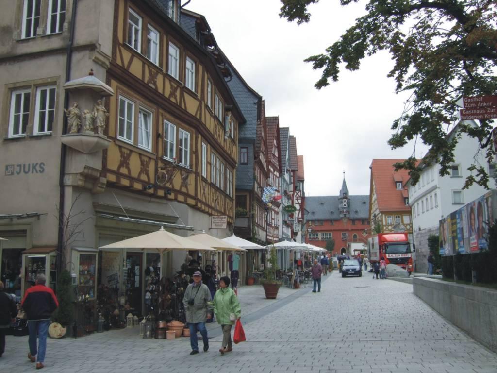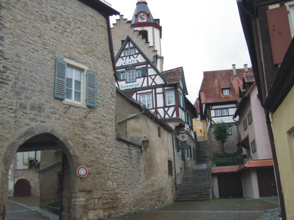 DeutschlandtourFlensburg - FüssenTag 14: Kitzingen-Albrechtshofen - Creglingen - 15.09.2008Vom Main ins Taubertal... Es war empfindlich kalt, als ich kurz nach 9 Uhr losfuhr. Vielleicht hätte ich doch meine Handschuhe mitnehmen sollen. Es war aber trocken, da macht die Kälte weniger aus. Zunächst setzte ich mit der Fähre auf die andere Mainseite über. Dann ging es stetig bergauf und anschließend wieder bergab durch die Weinberge nach Biebelried. Hier wollte ich einen Verwandtenbesuch machen. Dort fragte ich einen Briefträger nach der gesuchten Straße. Er kannte sich gut aus und schickte mich zwei Dörfer weiter. Der Überraschungsbesuch kam nicht so ganz überraschend, da die Besuchte am Tag zuvor am Niederrhein war und dort von meiner Radtour erfahren hatte. Die Freude war trotzdem groß. Eine gute Stunde erzählten wir bei einer leckeren Tasse Kaffee, vor allem über die Deutschlandtour. Dann wollte ich aber weiter. Etwas Ballast ließ ich dort, der von dort per Post auf den Heimweg geschickt wurde. Es ging zügig weiter bis Ochsenfurth. Noch einmal ging’s über den Main. Ich schob mein Rad durch die Stadt, um nach dem Gäuradweg Ausschau zu halten. Im Internet hatte ich davon gelesen. Es ist der Weg über die ehemalige Bahntrasse der Gäubahn, die zwischen Ochsenfurth und Röttingen (Weikersheim) verlief. Sie ist eine Querverbindung zwischen Main und Tauber. Mit etwas Suchen fand ich dann auch den Einstieg. Zunächst gab es einen Anstieg, aber dann verlief die gesamte Strecke fast eben über einen geschotterten Weg, bis es zum Taubertal wieder bergab ging. Er ließ sich gut befahren und schon kurz nach 14 Uhr erreichte ich Creglingen. Mir war immer noch kalt und deshalb machte dich dort erst mal eine Kakaopause. Als ich das Restaurant wieder verließ, regnete es. Ursprünglich hatte ich geplant, bis Rotenburg durchzufahren, aber bei dem Wetter überlegte ich es mir anders. Direkt neben dem Lokal war die Touristeninformation. Das paßte ja gut. Nach wenigen Minuten hatte ich ein Zimmer für die Nacht. So früh hatte ich bisher noch nie Schluß gemacht. Später lief ich noch eine Runde durch die kleine Stadt, was aber bei dem Wetter keinen Spaß machte. Es gab auch nicht sehr viel zu sehen. Abends habe ich dann im Gasthof lecker gegessen und mich anschließend gemütlich vor den Fernseher gesetzt.