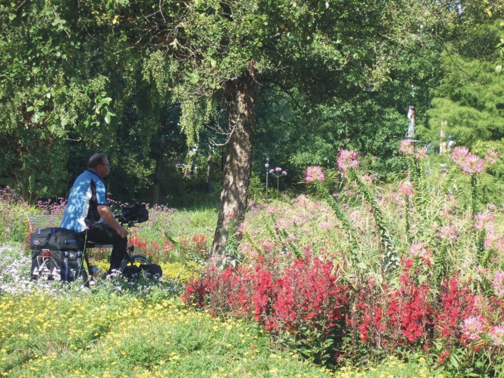EmsradwegHövelhof - EmdenTag 2: Rietberg - Telgte - 07.09.2009Blumen, Parks und Fachwerkhäuser... Der Tag fing gut an: blauer Himmel, kein Wind und angenehme Temperaturen. Das Frühstück war lecker und reichhaltig und wir wurden aufgefordert, die überzähligen Bötchen mitzunehmen, da die Wirtin nicht alle selber essen konnte. Das taten wir dann auch. Gegen 10 Uhr verließen wir Rietberg. Vorher waren wir noch kurz an einer Tankstelle, um Luft zu tanken. Das geht mit Kompressor leichter als per Hand. Von Rietberg aus führte der Weg zuerst nach Wiedenbrück und ohne große Unterbrechung nach Rheda. Beide Städte hatten wieder reichlich Fotomotive zu bieten. Es gab wieder schön restaurierte Fachwerkhäuser und wunderschöne Parks, durch die der Radweg führte. Die Parks waren nicht nur für Erwachsene schön angelegt, sondern boten auch für Kinder tolle Spielplätze. In Rheda wurde mal wieder an Radwegschildern gespart. Das verhalf uns zu einigen zusätzlichen Kilometern. Wir hatten zwar in einer Bäckerei nachgefragt, da aber die Verkäuferin nicht aus der Stadt kam, führte uns ihr Hinweis in die Irre. Es war mittlerweile Mittag geworden und wir hielten Ausschau nach einer Bank, um unsere Brötchen zu verspeisen. Auch daran war gespart worden. Einige Kilometer weiter fanden wir dann doch noch einen Picknickplatz. Wir fuhren dann gestärkt bis Marienfeld. Am Ortseingang tranken wir in einer Bäckerei einen Kaffee. Von Marienfeld fuhren wir dann zügig nach Harsewinkel. Dort machten wir eine ausgiebige Eispause. Vorher hatten wir überlegt, nur bis Warendorf zu fahren, da es aber prima lief, buchten wir telefonisch eine Übernachtung in Telgte. Harsewinkel kam mir nach den vielen Jahren, seit dem ich mit Hildegard die erste Radtour, den R1 Radweg, gefahren bin, nicht mehr sehr bekannt vor, lediglich der Spruch: „runter vom Sofa, rein in die Kneipe“, stand immer noch an einer Gaststätte. Es ging nun weiter in Richtung Warendorf. Einige Kilometer vor der Stadt kamen wir an einem riesigen Anwesen vorbei, das gerade gebaut wurde. „Was soll das werden?“ fragten wir uns. Es waren mehrere große rietgedeckte Gebäude, die mit aufwendigem Fachwerk und vielen Erkern und Türmchen versehen waren. Wir vermuteten, es würde ein Nobelhotel werden. Wir fragten einen Radfahrer, der uns erzählte, es gehöre einem „Sklaventreiber“, der mit Leiharbeitern sein Geld verdiene. Die Genehmigung für die Wohngebäude sei zurückgezogen worden und es würden jetzt noble Pferdeställe daraus. Wir kamen dann nach Warendorf. Dort war ich schon einige Male, aber den historischen Marktplatz hatte ich bisher noch nicht gesehen. Er war sehenswert und wurde von uns in Bild und Ton festgehalten. Gegen 18.15 Uhr erreichten wir unser Tagesziel: Telgte. In einem schönen alten Gasthof erhielten wir ein Zimmer. Es ist ja immer wieder spannend, weil man nie weiß, wo man landet. Nachdem wir uns frisch gemacht hatten, drehten wir zu Fuß noch eine Runde durch das nette Städtchen und gönnten uns ein leckeres Abendessen.