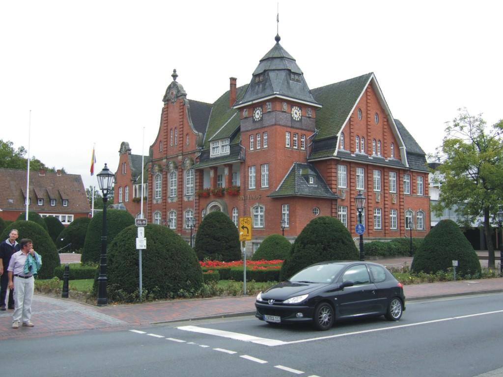 EmsradwegHövelhof - EmdenTag 4: Haaren - Papenburg - 09.09.2009In der Fehnkolonie... Nach einem, wie erwartet guten Frühstück, ging es gegen 10 Uhr los. Leider war es grau in grau, aber zum Glück trocken. Wir fuhren zuerst eine kleine Runde durch das Feriendorf und dann zum Stadtzentrum. Dort schauten wir uns den Emslanddom an. Anschließend ging es wieder auf den Emsradweg. Zuerst führte der Weg am Hafen und an einer kleinen Werft vorbei. Jetzt hatte ich das Gefühl, im Norden zu sein. Einige Kilometer weiter konnte man die Landschaft von einem hölzernen Aussichtsturm aus betrachten. Bis Lathen verlief der Weg in der Nähe des Flusses. Dort machten wir eine kurze Kaffeepause. Danach ging es auf einem schnurgeraden, geschotterten Weg am Dortmund-Ems-Kanal entlang. Plötzlich kam es zu einer überraschenden Begegnung. Ein junger Igel war ebenfalls auf dem Emsradweg unterwegs, natürlich zu Fuß. Als er uns kommen sah, rollte er sich ein und stellte sich tot. Wir haben so lange ruhig dagestanden und gewartet, bis er sich traute weiter zu laufen. Dieser Streß hatte ihn anscheinend so mitgenommen, daß er sich ein paar Meter weiter ins Gras legte und auf der Stelle einschlief. Wir fuhren weiter bis Heede. Dort verließen wir für den Radweg und fuhren an der Landstraße entlang weiter. Hier rollte es entschieden besser. In Aschendorf machten wir nochmals eine kurze Pause und danach ging es weiter auf die letzten Kilometer bis Papenburg. Die Touristeninformation war auf einem alten Segelschiff untergebracht. Es lag sehr malerisch auf dem Hauptkanal direkt vor dem schönen Rathaus. Dort vermittelte uns eine freundliche junge Frau ein Zimmer für eine Nacht. Leider lag das etwas außerhalb des Zentrums und so mußten wir noch ein paar Kilometer fahren. Wir waren etwas früh dran und um die Zeit zu überbrücken, probierten wir in einem kleinen Straßencafe ein Stück Ostfriesentorte. Es handelt sich dabei um Kuchen mit in Rum eingelegten Rosinen. Wir unterhielten uns derweil mit zwei original Papenburger Ostfriesen. Sie gaben uns einige Tips für den morgigen Tag und für das heutige Abendessen. Gegen 18 Uhr bezogen wir dann unser Zimmer in der Privatpension in einem kleinen Siedlungshaus. Es hatte keine 3-Sterne-Ausstattung, aber das hatten wir ja auch nicht erwartet. Nach dem Duschen fuhren wir noch zu einem netten Gasthof, den uns die beiden vorhin empfohlen hatten und wurden nicht enttäuscht.