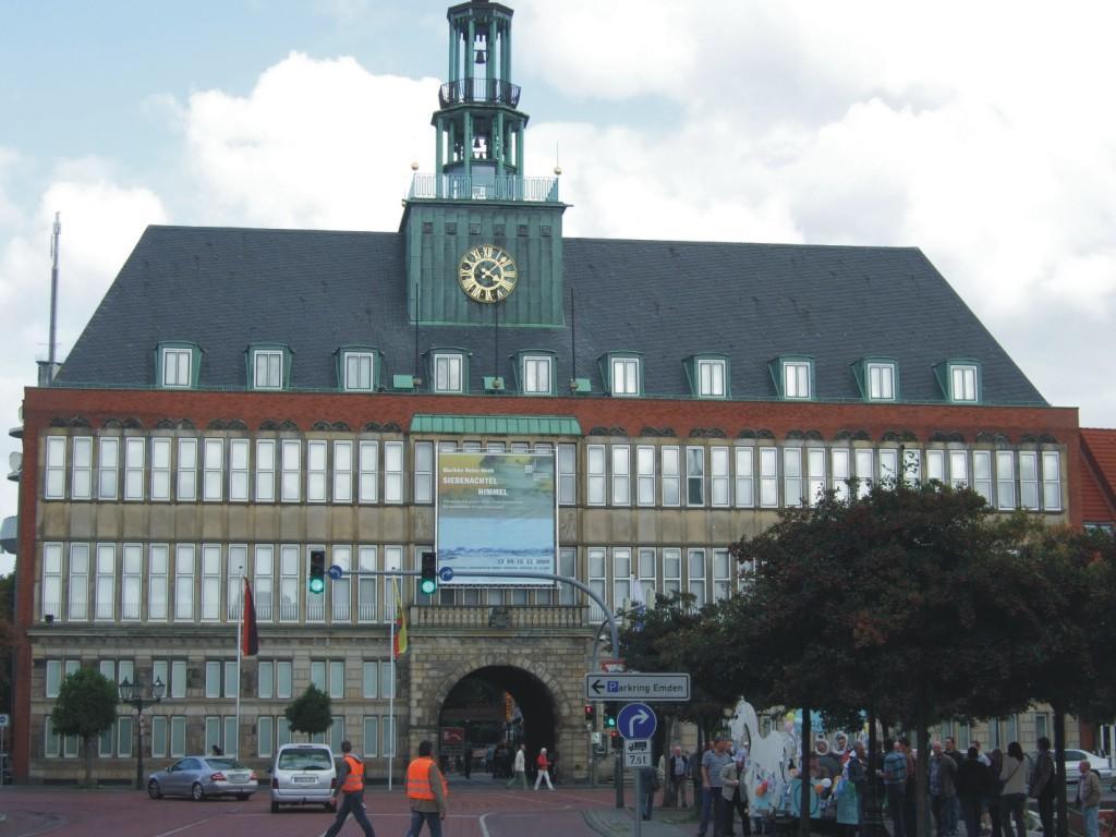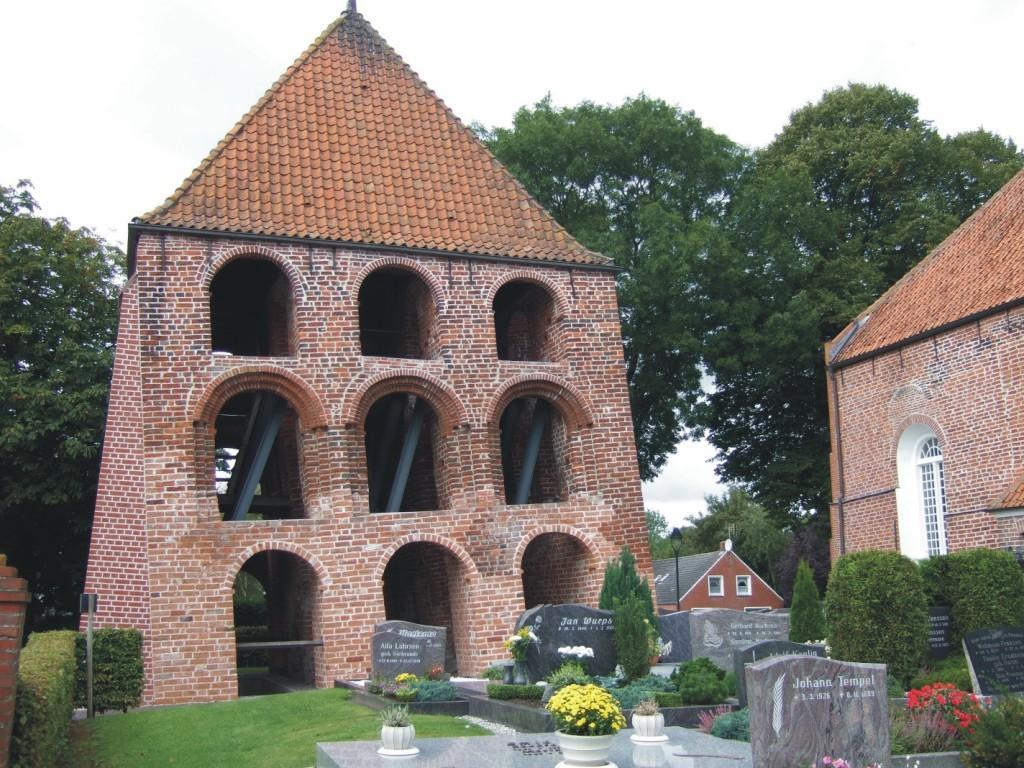 EmsradwegHövelhof - EmdenTag 6: Leer - Emden - 11.09.2009Kein Bett in Emden... Heute wurde uns das Frühstück im Zimmer serviert. Wenn es wärmer gewesen wäre, hätten wir sogar in der großen Loggia frühstücken können. Vor der Abfahrt unterhielten wir uns noch eine Weile mit unseren Gastgebern und kamen deshalb auch erst gegen 10.30 Uhr weg. Wir mußten noch einmal komplett durch die Stadt fahren, bevor wir die Emsbrücke erreichten. Sie war längere Zeit umgebaut worden und war gerade erst wieder für den Verkehr freigegeben worden. Jetzt paßten auch sehr große Schiffe durch sie hindurch. Der Deichweg war recht eintönig und da der Wind wieder aus nördlicher Richtung kam, wurde man dort auch kräftig ausgebremst. Wir fuhren deshalb auf einem Radweg entlang der Landstraße. So kamen wir auch durch einige nette kleine Orte. In Midlum sahen wir uns den schiefen Glockenturm der Kirche genauer an. Er war kräftig zur Seite abgesackt, aber mit Beton und Eisenträgern gegen weiteres Absacken gesichert. Einige Kilometer weiter machten wir dann eine ausgiebige Kaffeepause in einem Bauerncafe. Es war ruhig und friedlich und noch richtig ländlich. Mehrere Hunde machten ihren Nachmittagsspaziergang ganz alleine durchs Dorf. Sie wirkten aber ruhig und gelassen und führten bestimmt kein „Hundeleben“. Kurz nach 14 Uhr erreichten wir Ditzum. Gerade als wir den Hafen erreichten, fuhr die Fähre ab. So hatten wir fast eine Stunde Wartezeit. Klaus holte sich ein paar Heringe als Pausenbrot. Nach der etwa 15minütigen Überfahrt erreichten wir Petkum. Dort wurde uns ziemlich aufdringlich von einem ältern Herrn empfohlen, den Gasthof im Ort zu nehmen. Wir fuhren aber trotzdem weiter bis zur Emdener Innenstadt. Bei der Touristeninformation wurden wir aber enttäuscht. Es gab keine freien, bezahlbaren Zimmer in der Stadt. So verzichteten wir auf einen Stadtbummel und fuhren direkt zum Bahnhof. Etwa 40 Minuten später fuhren wir mit dem „Quer durchs Land Ticket“ nach Hause.