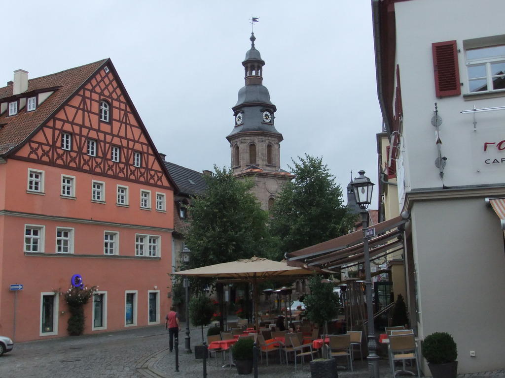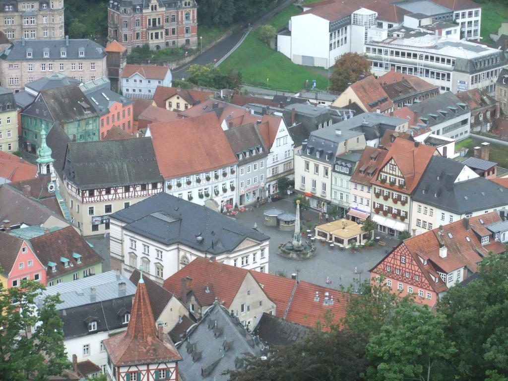 Mainradweg 1Bayreuth - WürzburgTag 2: Bayreuth - Kulmbach - 09.09.2010Am roten Main... Da wir sehr früh zu Bett gegangen waren, waren wir bereits um 7 Uhr ausgeschlafen und saßen schon vor 8 Uhr am Frühstückstisch. Kurz nach 9 Uhr ging es dann los. Das Wetter war besser als erwartet. Laut Wettervorhersage war für heute 80% Regen angekündigt. Bei der Abfahrt war es aber schon mal trocken. Als erstes fuhren wir zum Festspielhaus. Es liegt am Stadtrand und wir hatten es gestern nicht gefunden. Außer uns war aber keine Prominenz vorhanden. Nach ein paar Erinnerungsfotos fuhren wir zurück in die Stadtmitte bis zum roten Main. Der Besuch der Mainquelle sparten wir uns. Das war uns als Auftakt zu unserer Tour zu anstrengend. Der Radweg war schnell gefunden. In einem großen Lebensmittelladen deckten wir uns mit Proviant für unterwegs ein. Dann ging es zügig weiter. Der Weg verlief bis Altenplos direkt am Fluss entlang. Danach führte er durch Wiesen und kleine Dörfer immer rauf und runter. Ab Neudrossenfeld ging es dann über eine alte Bahntrasse. Der Untergrund war geschottert und stieg leicht an. Konny war erkältet und dementsprechend leicht angeschlagen. An manchen Stellen mussten wir schieben. Der Weg verlief durch ein Waldgebiet und ist im Sommer, wenn es heiß ist ideal. In Thurnau ging es dann bergab. Im ersten Lokal am Ortseingang machten wir Mittagspause und tranken eine Tasse Kaffee. Wir waren nicht die einzigen Radfahrer. Ein Männertrio, das wir am Vortag bereits im Zug getroffen hatten, machte dort ebenfalls Rast. Die drei waren von der ganz harten Sorte, sie zelteten sogar. ( ich hab Rücken). Da ziehen wir beide ein gemütliches Bett vor. Es kamen noch mehr Radfahrer an. Wir setzten unsere Fahrt nach einer knappen Stunde fort. Auf einer Bank machten wir noch ein kleines Picknick. Danach kam ein Radweg nach unserem Geschmack. Es ging auf einer Bahntrasse weiter. Diesmal war der Untergrund jedoch geteert und es ging leicht bergab. Die Räder rollten von selbst. Am Zusammenfluss von rotem und weißen Main machten wir einen Fotostopp. Danach fuhren wir am weißen Main zurück bis zum Stadtzentrum von Kulmbach. Leider kam etwas Regen auf. Kurz vor 16 Uhr erreichten wir die Touristeninformation und buchten ein Zimmer etwas außerhalb der Stadt. Wir wollten uns aber noch gerne das Stadtzentrum ansehen. Die junge Dame von der Information bot uns an, die Räder samt Gepäck im Foyer der Stadthalle zu parken. Das war wirklich nett! Der Regen hatte in der Zwischenzeit wieder aufgehört. Nun gingen wir zu Fuß zur Plassenburg hinauf. Es ist eine große Burganlage oberhalb der Stadt. Von dort hatten wir einen phantastischen Ausblick auf die Stadt und die Umgebung. Anschließend bummelten wir durch die historische Altstadt. Nach einer kleinen Stärkung holten wir unsere Fahrräder ab und fuhren zu unserer Pension nach Mangersreuth. Es ging mal wieder etwas hinauf. Deshalb waren wir froh, dass es nur wenige Meter von unserer Pension entfernt ein griechisches Restaurant gab. Unsere Wirtin hatte es empfohlen und wir wurden nicht enttäuscht. Wir haben ausgezeichnet gegessen. Der erste Fahrtag war nun schon zu Ende. Es hat uns beiden gefallen und wir waren gespannt auf die nächsten Tage.