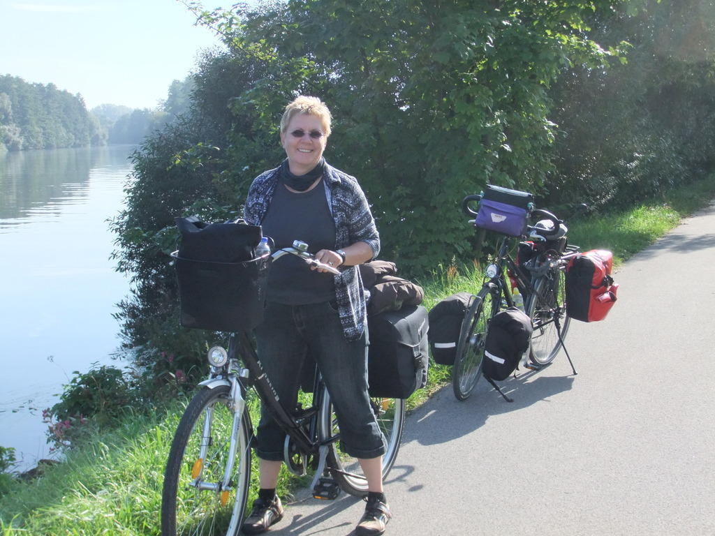 Mainradweg 1Bayreuth - WürzburgTag 5: Bamberg - Wipfeld - 12.09.2010Schönwetterradeln... Unser Zimmer war sehr klein. Das lag daran, dass wir in einem historischen Gasthof übernachteten. Die Handtücher waren möglicherweise aus dem vergangenen Jahrtausend. Sie waren sauber, aber sehr verschlissen. Man hätte sie gut für die Radpflege benutzen können. Das Frühstück dagegen war schon dem 2. Jahrtausend angemessen. Unseren Radweg fanden wir auf Anhieb. Heute lief es wieder wunderbar. Das Wetter war schön. Schon um 11 Uhr konnte ich meine Jacke gegen eine kurzarmige Weste tauschen. Eine Stunde später trennte ich die langen Hosenbeine ab. Gegen Mittag gelangten wir nach Haßfurt. Zuerst machten wir ein gemütliches Picknick am Mainufer. Zum Nachtisch gab es in der Innenstadt ein Eis. Haßfurt gefiel uns sehr gut. Wir schoben unsere Räder durch die Innenstadt und trafen zum wiederholten Mal das Ehepaar aus Siegburg wieder, dass wir zum ersten Mal in Reundorf getroffen hatte. Der Mann hatte an diesem Tag Geburtstag. Wie seine, um einiges jüngere Frau uns verraten hatte, wurde er 74 Jahre. Ich finde es bewundernswert, wenn man noch in diesem Alter solche Reisen unternimmt. Ich hoffe, das kann ich dann auch noch! Übrigens haben wir an diesem Tag auch das Männertrio vom ersten Tag wieder getroffen. Sie waren gleichzeitig mit uns an der Wallfahrtskirche Maria Limbach. Sie hatten sich jedoch in der Zwischenzeit personenmäßig verdoppelt. Von Haßfurt aus ging es dann zügig bis Schweinfurt. Es waren wieder viele Leute unterwegs. Bei dem Wetter musste man einfach den Sonntag draußen verbringen. In Schweinfurt fand gerade ein mittelalterliches Fest statt. Weil wir noch weiter wollten, schauten wir uns nur das Renaissance Rathaus an. Anschließend fuhren wir auf der nördlichen Mainseite weiter. Bei meiner Tour vor zwei Jahren, bin ich schon einmal durch Schweinfurt gekommen. Bin aber damals auf der südlichen Mainseite weiter gefahren. Der Wegabschnitt hat mir sehr gut gefallen und war mir noch in guter Erinnerung. Das erste Stück hinter der Stadt führte jetzt weiter vom Main weg und nah an einer Autobahn entlang. Außerdem führte er in einem großen Bogen um ein Kraftwerk herum. Ich bedauerte etwas, nicht wieder den südlichen Weg genommen zu haben. Nach fast 80 km machten wir in Wipfeld Schluss. Wir fanden auf Anhieb ein sehr schönes Zimmer in einem alten Gasthof mitten im Ort. Wir machten noch einen Bummel durch das kleine hübsche Winzerdorf. Nun waren wir in einer richtigen Weingegend angelangt. Hier kann man es gut aushalten. Nach dem Spaziergang aßen wir in unserem Gasthof zünftig Gerupfter und anschließend Flammkuchen. Dazu tranken wir natürlich Wein. Wir waren rundum zufrieden. Es ist wieder ein wunderschöner Tag gewesen.