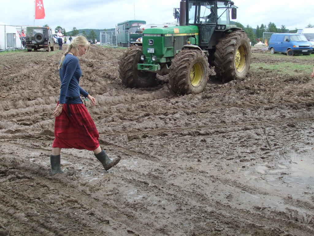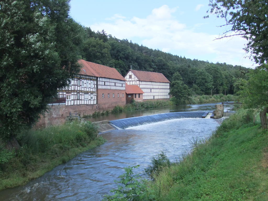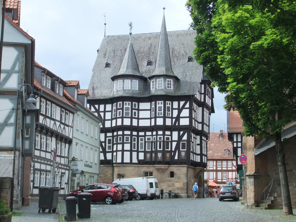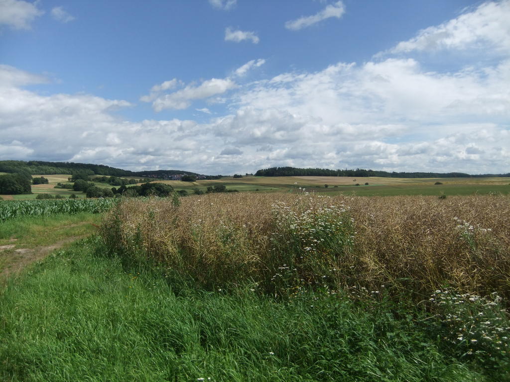 Deutschland Ost-WestZittau - AachenTag 10: Kerspenhausen - Cölbe - 19.07.2012Woodstock... Das Frühstück war hervorragend. Die ganze Atmosphäre in der Pension war sehr angenehm. Hier könnte man es auch länger aushalten. Trotzdem ging es voll Vorfreude auf den kommenden Tag weiter. Zuerst folgte ich dem Fuldaradweg, der gemeinsam mit dem R 1 und R 7 Radweg verlief. In Niederaula ging es dann auf dem R 7 Radweg in Richtung Niederjossa. Ich verließ nun die eigentliche D 4 Route, weil ich mir den Umweg über Lauterbach ersparen wollte und möglichst direkt in Richtung Alsfeld fahren wollte. Ich besorgte mir in Breitenbach noch etwas Proviant und wunderte mich dabei über einen Traktorfahrer, der vor dem Geschäft stand und u.a. einige Kästen Bier auf sein Gefährt lud, das unwahrscheinlich schmutzige, verschlammte Räder hatte. Ich fuhr zunächst auf der B 62 weiter und kam an einem riesigen Festivalgelände an der Burg Herzfeld vorbei. Hier fand so etwas wie Woodstock statt. Einige Alt-68er, teilweise mit Kindern, begegneten mir auf den Wegen zum Festivalgelände. Viele Zelte waren bereits aufgebaut. Autos und Wohnwagen konnten aber nur mit Hilfe von Traktoren bewegt werden. Das ganze Gelände war eine riesige Matscharena. Die passenden Schuhe für dieses Event waren Gummistiefel. Den Besuchern schien es aber trotzdem Spaß zu machen. Das Festival findet schon viele Jahre statt und die Besucher kommen von weit her. Kurz vor Altenburg gab es dann eine Straßenbaustelle. Eigentlich war die Straße gesperrt. Ich versuchte es trotzdem, denn einen kilometerlangen Umweg über die Berge wollte ich ungern in Kauf nehmen. Mit einigen Metern schieben hat es auch funktioniert. Die schöne Altstadt von Alsfeld sah ich mir schiebenderweise an. Eigentlich hatte ich beabsichtigt auf dem Marktplatz einen Kaffee zu trinken. Dort wurden aber gerade eine Bühne und Stände aufgebaut, weil am Wochenende eine Veranstaltung stattfand. So blieb es beim Anschauen und ich fuhr weiter. Bis Angenrod versuchte ich weiter über die B 62 zu fahren, aber die Autos und LKW saßen mir sehr im Nacken. Einen Radweg gab es nicht. Deshalb gab ich auf und fuhr in Richtung Antrifttal. Dann mußte ich den Berg nach Ohmes hochschieben. Hinterher folgte eine Abfahrt nach Ober Gleen. Ab dort gab es einen schönen Radweg parallel zur Bundesstraße. In Niederklein mußte ich mich entscheiden. Es gab zwei Möglichkeiten um, ohne über die Bundesstraße zu fahren, nach Kirchhain zu gelangen; entweder über Stadtallendorf oder Amöneburg. Ich entschied mich für Stadtallendorf. Dort machte ich eine Weile Pause und gönnte mir ein leckeres Eis. Jetzt mußte ich nur noch den D 4 Weg finden. Ich fand ihn schell und wollte zunächst bis Kirchhain. Irgendwo verpasste ich einen Abzweig und landete prompt wieder auf der B 62. Dann also über die Bundesstraße weiter. Plötzlich war ich aber wieder in Niederklein. Ich habe mich maßlos geärgert. Also noch mal fünf Kilometer zurück, den Berg rauf und wieder runter. In Kirchhain gelangte ich dann wieder auf den richtigen Weg Richtung Cölbe. Bis Anzefahr lief es gut, immer an der Bahn entlang. Dann wurde es wieder schwierig. Es gab zwar ein Schild R2, das wäre der richtige Weg, aber gleichzeitig stand auch Marburg darauf, wo ich nicht hin wollte. Einige Kilometer fuhr ich hin und her, um nach anderen Hinweisen zu suchen, bis ich einige Radler traf, die mir erklärten, daß der Weg nach Marburg über Cölbe führt, weil man sonst über einen Berg fahren müßte. Nun ja, bei uns am Niederrhein kann man fast Luftlinie fahren. Hier muß man umdenken. In Cölbe wollte ich übernachten, mir reichte es für heute. Leider gab es hier nur Hotels. Die Preise waren entsprechend. Der Wirt gab mir zu verstehen, daß die nächste Übernachtungsmöglichkeit 30 km weiter wäre. Also blieb ich. Wenn ich richtig nachgeschaut hätte, hätte mir eigentlich auffallen müssen, daß die JH in Marburg nur sechs Kilometer weiter war. Nun ja, später ist man schlauer. Heute war mal wieder der Wind mein ärgster Gegner. Es gab zwar einige Höhenmeter zu erklimmen, aber selbst beim Herunterfahren bremste er mich. Wenn das Wetter besser gewesen wäre, wäre die Tour bestimmt viel schöner und einfacher gewesen. Bei so einem ungemütlichen Wetter hatte ich keine Lust, einfach mal am Wegesrand anzuhalten und die Natur zu genießen. Auch für Stadtbesichtigungen kam keine rechte Lust auf. Wenn es regnet und stürmt, will man nur weiter kommen. Jetzt war die Tour in erster Linie eine sportliche Herausforderung. Sie ist mit einem "normalen" Radurlaub nicht zu vergleichen. Diese Tour ist etwas um herauszufinden, ob ich die Strecke, die vielen Höhenmeter und die damit verbundene Anstrengung, schaffe. Bis zur Werra war ich mir nicht sicher, ob es klappt. Danach aber war der Knoten geplatzt und ich bin ziemlich sicher, am Dreiländereck anzukommen.