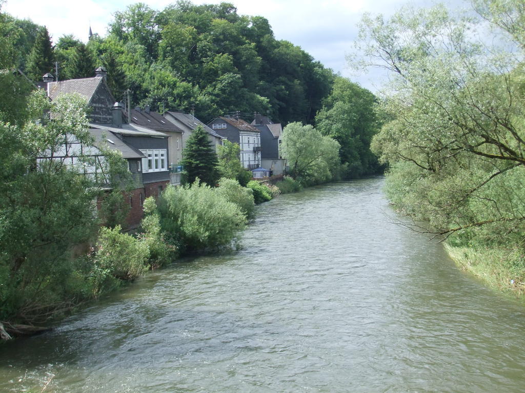 Deutschland Ost-WestZittau - AachenTag 12: Siegen Truppach - Windeck Rosbach - 21.07.2012Siegtalradweg ohne Radweg... Nach einem sehr gemütlichen und ausgiebigen Frühstück, bei dem wir schon die ersten Fotos der Tour auf dem PC angesehen hatten, ging es erst gegen 12 Uhr los. Ich hatte versucht, Uta zum Mitfahren zu bewegen, aber im Nachhinein war es besser, daß sie es nicht versucht hat. Der Einstieg zum Siegtalradweg war schnell gefunden. In der Nähe des Bahnhofs gab es einen alten Ringlokschuppen, in dem einige schöne Dampfloks standen. Die Türe stand auf und ich durfte einen kurzen Blick hineinwerfen um für Klaus ein paar Fotos zu schießen. Der Weg durch Siegen war gut ausgeschildert, doch wenig später wurde es auf Grund einer großen Baustelle schwieriger. Ich mußte einen Umweg über die Berge nehmen. Der Radweg verlief dann viele Kilometer über die Bundesstraße und war sehr schlecht ausgeschildert. Meist gab es keinen Radweg, oder nur einen Seitenstreifen neben der vielbefahrenen Straße. Auch wenn es auf Grund der geologischen Gegebenheiten nicht immer möglich ist, einen separaten Radweg anzulegen, hätten ein paar mehr Schilder, mit Kilometerangaben zum nächsten Ort, die Tour sehr erleichtert. Die wenigen vorhandenen Schilder waren oft nicht eindeutig. Mit Kindern ist der heutige Streckenabschnitt nicht zu empfehlen. Es ist mir unverständlich, wie man so einen Weg als Radweg propagieren kann. Man kann ja fast überall mit dem Rad fahren, das ist aber dann nicht unbedingt ein ausgewiesener Radweg. In Betzdorf war die Ausschilderung am schlechtesten. Nicht nur ich kreiste mehrfach durch die Innenstadt, um den Weg in Richtung Wissen zu finden , sondern auch andere Radfahrer hatten das gleiche Problem. Nur mit Hilfe eines freundlichen Taxifahrers gelang es, aus der Stadt herauszukommen. Er erklärte uns, daß wir über eine Fußgängerbrücke über die Bahngleise müssten, um dann anschließend auf der B 62 weiter zu fahren. Zu guter letzt habe ich mich noch mal kräftig verfahren. Ich hatte von der Bundesstraße die Nase voll. Da ich von diesem Abschnitt keine Karte hatte, weil ich glaubte ich würde mich auskennen, da ich vor vielen Jahren in der Nähe gearbeitet hatte, bin ich im falschen Tal gelandet. Daß der kleine Bach, an dem ich entlang fuhr, nicht die Sieg war, war mir klar, doch ich glaubte, der Weg würde wieder zur Sieg führen. Ich fuhr durch Hof Holpe nach Forst und fuhr dann genau mitten auf der Grenze zwischen Rheinland-Pfalz und Nordrhein-Westfalen. Auf der einen Straßenseite stand das Ortschild: Kohlberg und auf der anderen das Schild: Überholz. Für die letzte Navigation benutzte ich meinen Telefonjoker: Agnes. Gegen 17 Uhr erreichte ich wohlbehalten mein Tagesziel. Von Agnes und Kunibert wurde ich empfangen, als ob ich gerade das gelbe Trikot bei der Tour de France gewonnen hätte. Die Waschmaschine wartete schon auf ihren Einsatz. Nachdem ich aus der Dusche kam, war auch meine Wäsche sauber. So einen Service liefert kein 4 Sterne Hotel. Es wurde noch ein sehr gemütlicher Abend mit meinen beiden alten Freunden.