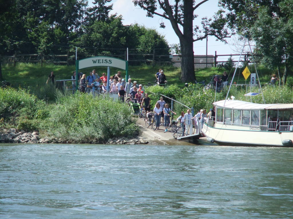 Deutschland Ost-WestZittau - AachenTag 13: Rosbach - Neubottenbroich - 22.07.2012Warum ist es am Rhein so schön... Es ist schon ganz anders, wenn man bei Freunden übernachtet, als wenn man in einer Pension ist, besonders, wenn man alleine unterwegs ist. Mit vielen guten Wünschen und dem Versprechen, sich bald wiederzusehen, ging es um 10.15 Uhr wieder los. Heute war das ideale Radelwetter: blauer Himmel, Sonnenschein und Windstille. Der Weg war ebenfalls sehr schön und nicht zu vergleichen mit dem Abschnitt, den ich gestern an der Sieg entlang gefahren bin. Er verlief meist auf einem separaten Weg direkt am Ufer der Sieg. Es waren nur wenige Steigungen zu bewältigen. Bei diesem schönen Sonntagswetter waren viele Radfahrer und Spaziergänger unterwegs. Ich gelangte problemlos nach Siegburg und machte dort eine ausgiebige Picknickpause. Danach ging es weiter in Richtung Troisdorf und von dort durch die Felder in Richtung Porz. Es ging weiter flott voran. Es war ein ganz anderes Bild, als an den anderen Tagen meiner Tour. Ich konnte weit in die Ferne schauen und mußte keine Berge umfahren oder erklimmen und konnte mich wieder auf meinen Orientierungssinn verlassen. Wenn man am Niederrhein zu Hause ist, gefallen einem zwar die Berge und man fährt gerne dorthin in Urlaub, aber wohler fühlt man sich im Flachland. Der Weg führte an einem großen Golfplatz vorbei. Auch dort herrschte reger Betrieb. In Zündorf setzte ich mit einer kleinen Personenfähre, dem Krokodil über den Rhein, nach Weiss über. Am Rhein war heute Hochbetrieb. Viele Ausflügler genossen den tollen Sommertag. Die Leute sonnten sich am Wasser, radelten, joggten oder spazierten am Rheinufer entlang. Ich mußte konzentriert fahren, um mit niemanden zusammen zu stoßen. Wenn ich gewollt hätte, wäre ich am frühen Nachmittag in Horrem bei meiner nächsten Anlaufstelle gewesen, aber ich wollte noch zum Dom. So wurde die Strecke eben etwas länger. Am ganzen Rheinufer war so etwas wie Volksfeststimmung. Ich bin selten in Köln, aber ich hatte das Gefühl, die Stadt platzt aus allen Nähten. Musik und Lebensfreude war zu hören und zu sehen. Es war ein schönes Gefühl, mit dem Rad vor dem Kölner Dom zu stehen. Da kam ein Gefühl von Dankbarkeit auf, daß ich die Reise bisher unbeschadet geschafft hatte. Anschließend fuhr ich auf direktem Weg zu unseren Freunden nach Horrem. Hier wurde ich auch wieder sehr herzlich empfangen. Nach der Begrüßung ging es erst mal unter die Dusche und dann fing der gemütliche Teil des Abends an.