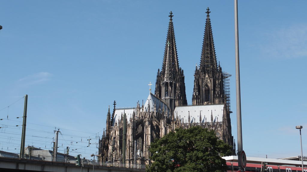 MittelrheinradwegMainz - DüsseldorfTag 6: Köln - Büderich - 11.08.2013Überraschende Begegnung... Nach dem Frühstück packten wir unsere Räder direkt im Frühstücksraum. Aufgestiegen sind wir aber erst vor der Haustüre. Es ging als erstes noch mal zum Dom. Heute war die Innenstadt bedeutend ruhiger. Die meisten Leute schliefen wohl noch, weil Sonntag war. Wir machten ein paar Erinnerungsfotos und schon ging es wieder auf den Rheinradweg. Zunächst fuhren wir auf dem Promenadeweg direkt am Rheinufer entlang. Mit dem Wetter hatten wir auch heute wieder Glück, es schien bereits am Morgen die Sonne. Der Weg verlief dann einige Kilometer über eine schattige Allee. Hier waren schon einige Jogger, Radfahrer, Hunde mit Herrchen und Familien unterwegs. Nach der Hafenausfahrt fuhren wir am riesigen Werksgelände der Fordwerke entlang. Danach wurde es etwas ländlicher. An der Fähre in Lange machten wir in einem neugebauten Ausflugslokal eine Kaffeepause. Hier herrschte reger Betrieb und auch die Fähre hatte genug zu tun. Nach der kleinen Pause führte der Weg über einen Deich. Durch den Gegenwind wurden wir etwas ausgebremst. Nebeneinander herfahren war auch kaum möglich. Viele Radler waren unterwegs, einige kamen uns entgegen, andere waren schneller als wir und überholten. Wir freuten uns schon auf Zons. Die alte Feste wollten wir auf jeden Fall wieder mal besuchen, andere wollten das aber auch. Hier knubbelten sich die Menschenmassen. Wir schoben die Räder durch die engen Gassen und hatten Mühe, einen Sitzplatz in einem Eiscafe zu ergattern. Als wir es endlich geschafft hatten und gemütlich bei einem Stück Pflaumenkuchen saßen und die Leute beobachteten, entdeckten wir plötzlich Irmgard und Uli, alte Freunde von uns, die in der Schlange vor dem Eisstand anstanden. Es war ein großes „Hallo“, als sie uns entdeckten. Die beiden waren auf dem Rückweg aus Bonn, wo sie das Wochenende verbracht hatten. Nun gab es Einiges zu erzählen. Nach der langen Pause setzten wir mit der Fähre auf die andere Rheinseite über. Wir besuchten Schloß Benrath. Der schöne Park und das Schloß boten eine Menge Fotomotive. Danach verließen wir den ausgeschilderten Radweg und fuhren auf direktem Weg zum Mannesmannufer. Hier herrschten wie immer Trubel und Geselligkeit. Die Rheinpromenade bietet reichlich Gelegenheit zum Essen und Trinken. Wir wollten aber wieder auf die linke Rheinseite und fuhren über die Oberkasseler Brücke nach Oberkassel. Es war bereits später Nachmittag und wir versuchten nun eine Übernachtungsmöglichkeit zu finden. Die vorhandenen Hotels waren uns aber zu teuer und deshalb fuhren wir weiter bis Büderich. Es wurde langsam eng und immer später. Außerdem setzte leichter Regen ein. Unser Bikelineheft konnte uns nicht weiterhelfen, da wir uns vom Rheinradweg entfernten. Wir fuhren weiter bis Büderich. Dort fragten wir einige Passanten nach einer Pension oder dergleichen. Leider hatte die einzige Pension im Ort geschlossen und so blieb uns nur die Möglichkeit im Hotel zu übernachten, was wir dann auch machten. Das Ambiente war natürlich besser, als die meisten Schlafplätze vorher, aber auch um einiges teurer. Zum Abendessen gingen wir in eine nahegelegene Pizzeria. Die Pizza war ausgezeichnet und versöhnte uns etwas mit der kostspieligen Übernachtung.