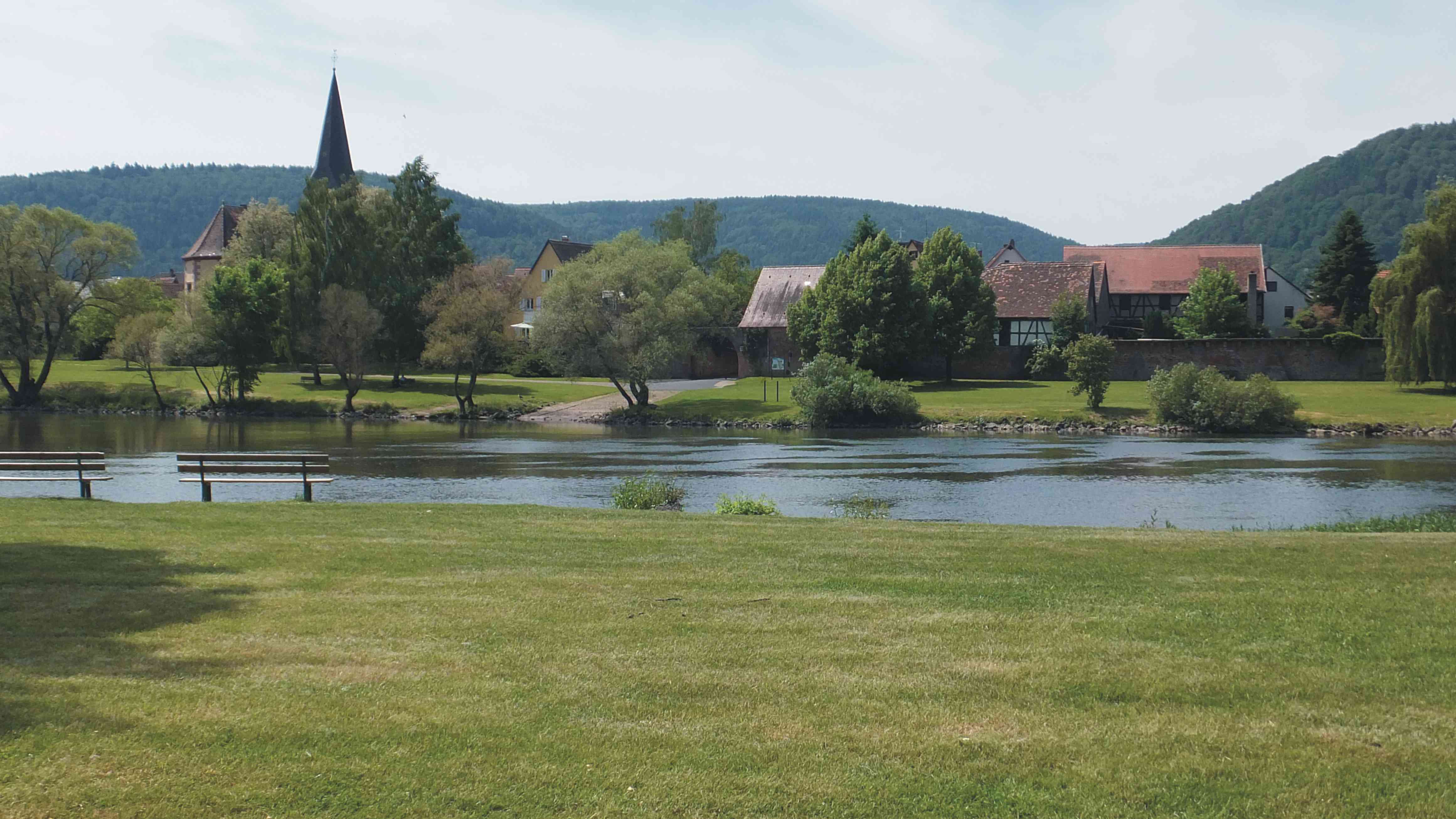 Nun machten wir am Ortsrand von Großheubach auf einer schattigen Bank an einem großen Spielplatz mit Blick aufs Wasser eine ausgiebige Picknickpause. Danach fuhren wir bis Klingenberg auf der rechten Mainseite weiter.
