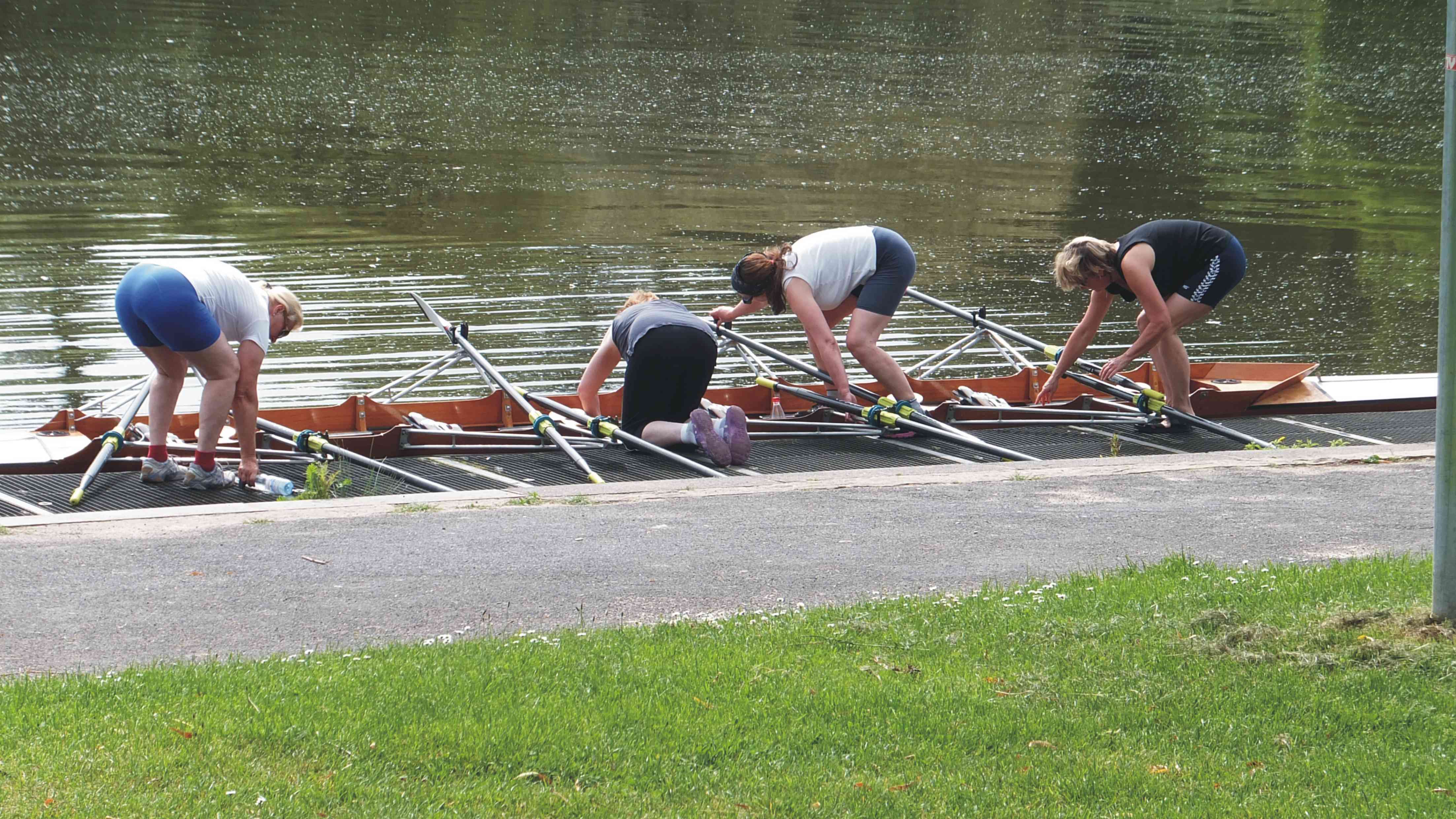 Jetzt war es nicht mehr weit bis zum heutigen Ziel. Daß wir uns einer Großstadt näherten, merkten wir deutlich. Es gab mehrere Baustellen und kleinere Umleitungen am Radweg. Außerdem war Feierabendzeit und Völkerscharen waren auf dem Uferweg unterwegs. Viele Radler fuhren in hohem Tempo, dazwischen Fußgänger, Jogger, Leute mit Kinderwagen, Hunde usw. Wir mußten hochkonzentriert fahren. Wir Landeier waren leicht überfordert mit diesem Gewusel. Vor einer Pizzeria wurden wir angehalten und um eine Luftpumpe gebeten. Zwei junge Mädchen hatten einen Plattfuß und benötigten etwas Luft. 500 Meter weiter hatte ein junger Mann Luftmangel im Reifen. Ihm wurde natürlich auch geholfen.