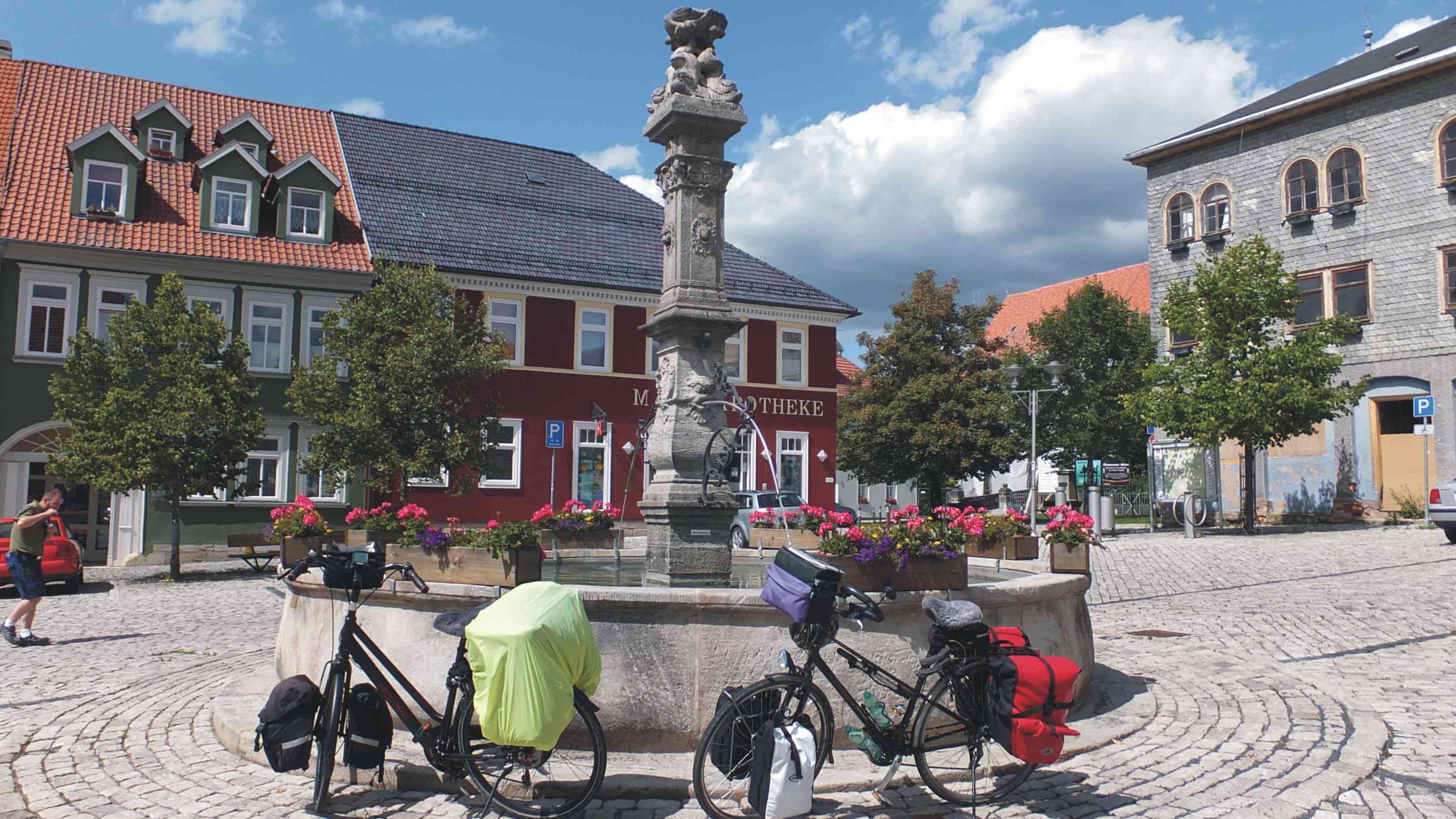 Nach 20 km Fahrstrecke waren wir am eigentlichen Ausgangspunkt unserer Radtour an einer der beiden Quellen, der Werraquelle Fehrenbach. Wir machten die obligatorischen Fotos und wären gerne kurz ins Gasthaus eingekehrt, das aber leider heute geschlossen war.