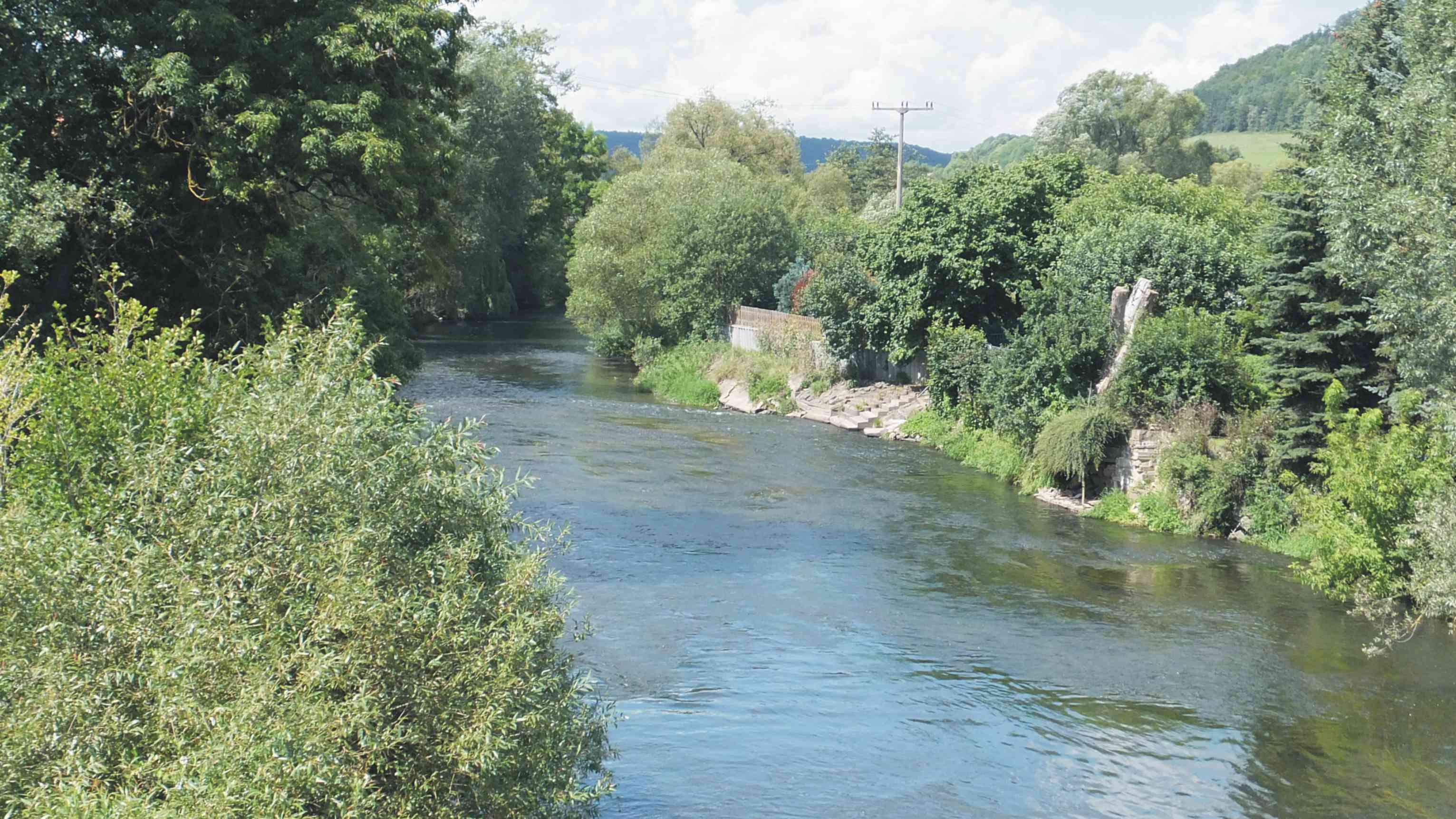 Wir fuhren weiter bis Schwallungen. Hier hatten wir ein Problem den Radweg zu finden. In meinem Heft war der Weg am linken Werraufer eingezeichnet. Als wir schon den Ortskern hinter uns gelassen hatten, schickten uns die Schilder über eine Brücke auf die rechte Werraseite und wieder zurück in Richtung Ortskern. Wir waren ratlos und fuhren noch mal ein Stück zurück. Ein freundlicher Herr erkärte uns die neue Wegführung. Es wäre wahrscheinlich einleuchtender gewesen, wenn man den Weg direkt durch den Ort und dann auf die neue Trasse geführt hätte. Das würde sicherlich auch der Gastronomie zugute kommen.