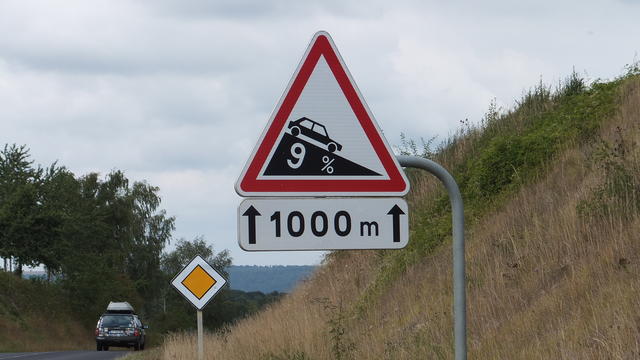 Zuerst fuhren wir zu einer Tankstelle zum Luftpumpen. Das ist einfacher, als per Hand nachzupumpen. Auf kleinen Landstraßen ging es bis Charny-sur-Meuse. wir überquerten die Meuse und einige Meter weiter den Canal de la Meuse. Von der Brücke aus sahen wir, daß ein asphaltierter Weg direkt daneben verlief. über diesen neu angelegten Weg fuhren wir bis Vacherauville. Leider hörte der Weg hier auf. Wir fragten verschiedene Dorfbewohner, ob es eine Möglichkeit gäbe über kleine Landstraßen oder Feldwege nach Champneuville oder Samogneux zu kommen. Wir sahen in der Ferne die D 964. Sie erschien uns sehr stark befahren und ging zudem mal wieder eine langezogene Steigung hinauf. Es gab aber leider keinen passenden Weg und so mußten wir doch über die große Straße, natürlich ohne Radweg, fahren.