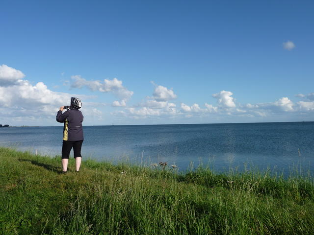 Nun folgte der heutige Härtetest. Es ging ca. 14 km am Deich entlang und das bei kräftigem Gegen- bzw. Seitenwind. Da wünscht man sich manchmal ein E-Bike.