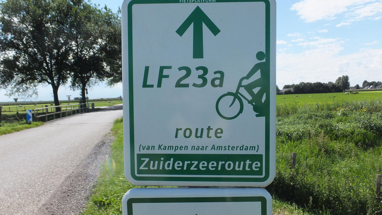 Hildegards Navi hatten wir mit Kabelbindern befestigt, so daß es seine Arbeit wieder aufnehmen konnte. Mit der Technik wird man bequemer, obwohl man in den Niederlanden hervorragend nach dem Knotenpunktsystem fahren kann. Man braucht eigentlich nur ein Blatt und einen Stift. An den großen Hinweistafeln sucht man sich die Route aus, notiert sich die Zahlen und fährt von Zahl zu Zahl. Außerdem gibt es LF-Routen und wie bei uns Themenrouten.