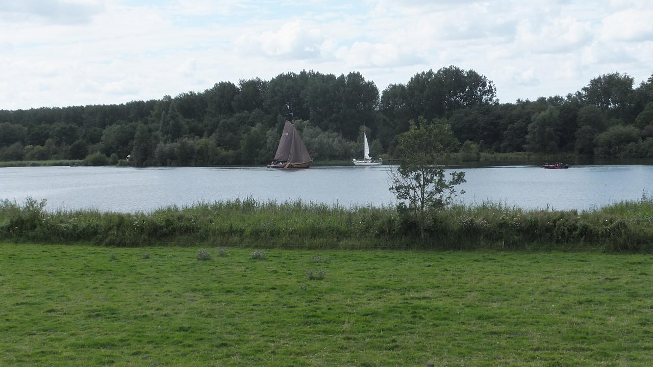 Gegen 14 Uhr setzten wir die Tour fort. Ab Noordeinde verlief der Weg meist auf einem Damm, auf der linken Seite mit Blick auf Wiesen mit Schafen und Kühen, auf der rechten Seite mit Blick auf das langgestreckte Drontermeer. Dort konnten wir in der Ferne viele Segel-und Motorboote beobachten.