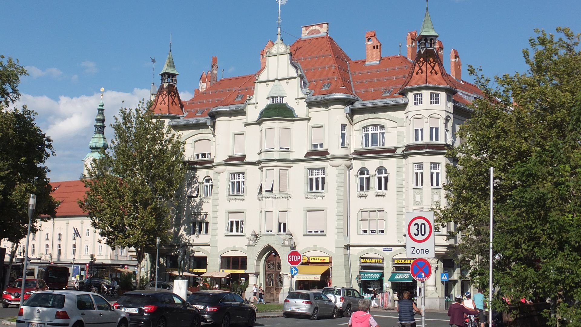 Wenige Kilometer weiter erreichten wir unser heutiges Ziel: Klagenfurt. Nachdem wir jetzt mehrere Tage meist auf separaten Wegen und in kleinen Städten unterwegs waren, war die Fahrt durch die sechstgrößte Stadt Österreichs doch eine kleine Herausforderung. Wir erreichten aber alle unbeschadet unser Hotel. Unsere Räder brauchten nicht in einer Garage zu übernachten, sondern wurden durch die Eingangshalle hindurch geschoben und parkten in einem großen Raum.