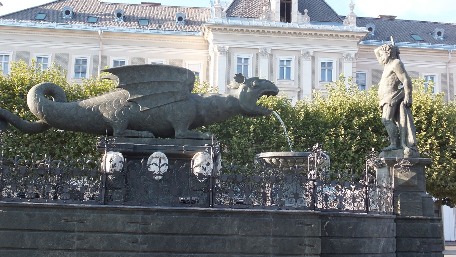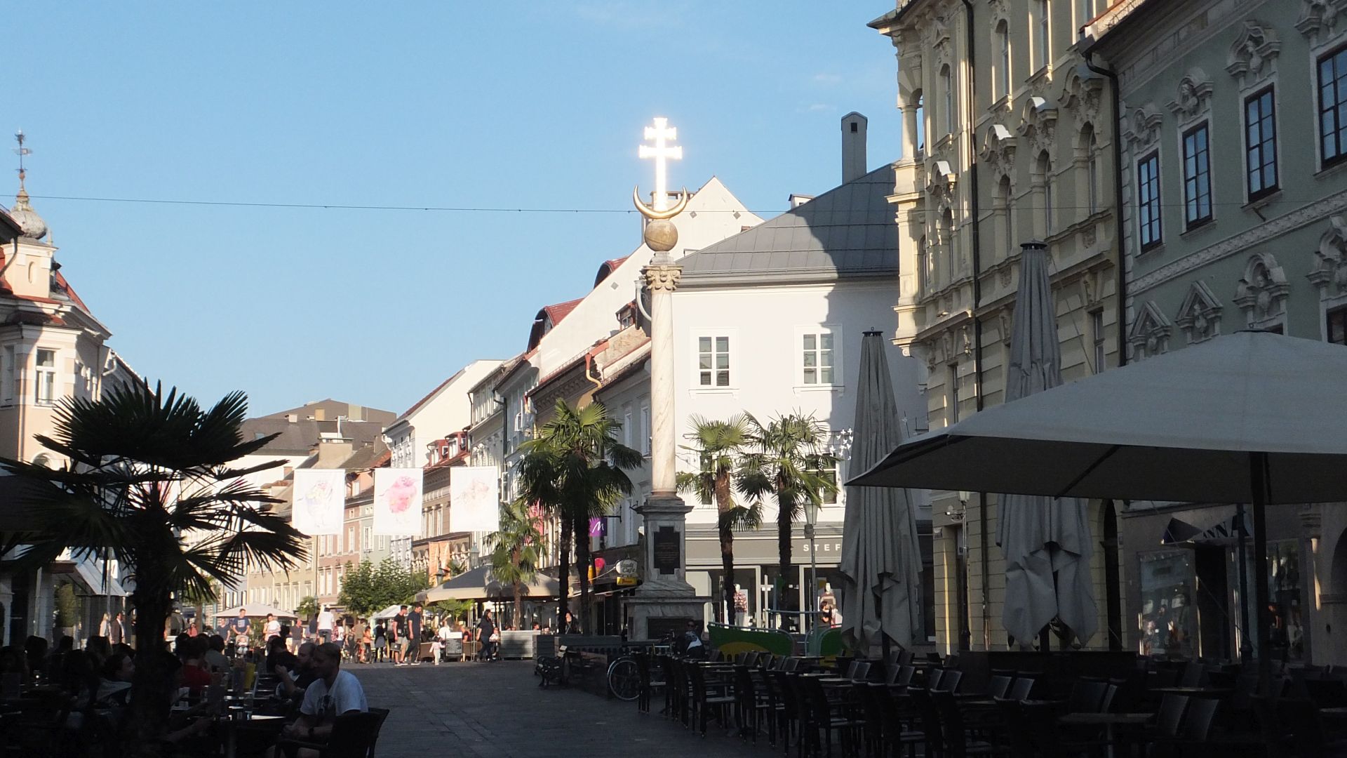Nach dem Duschen machte ich noch einen Stadtbummel. Die Stadt hat mich sehr beeindruckt. Zuerst ging ich zum neuen Platz. In der Mitte befindet sich der Lindwurmbrunnen. Rings um den Platz herum befinden sich große, eindrucksvolle Gebäude. Auch ein Denkmal von Maria Theresia befand sich auf dem Platz. Ich bummelte an der St. Egid Kirche vorbei. Am alten Platz befindet sich eine Pestsäule, die sogenannte Dreifaltigkeitssäule. Ich ging weiter zum Landhaushof. Es ist ein historisch bedeutender und zugleich der representativste Profanbau der Stadt. Jetzt wäre es schön gewesen, einen Reiseführer zu haben, der einem einiges erklärt. So blieb mir nur, die schönen Gebäude zu betrachten, das gute Wetter zu genießen und durch die angrenzenden Straßen zu bummeln. Es herrschte eine richtige Sommerstimmung. Die Menschen schienen den Abend zu genießen. Ich machte einige Erinnerungsfotos und hätte bestimmt noch viele schöne Ecken entdecken können. Ich wollte aber pünktlich zum Abendessen erscheinen und beendete meinen Stadtrundgang.