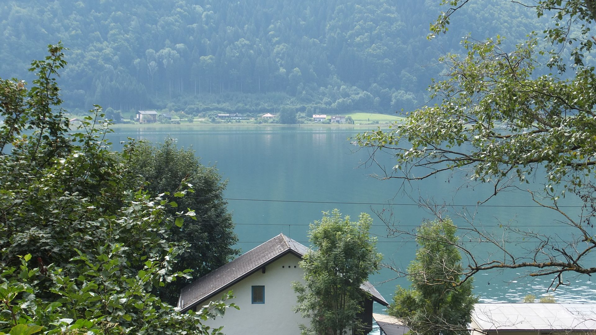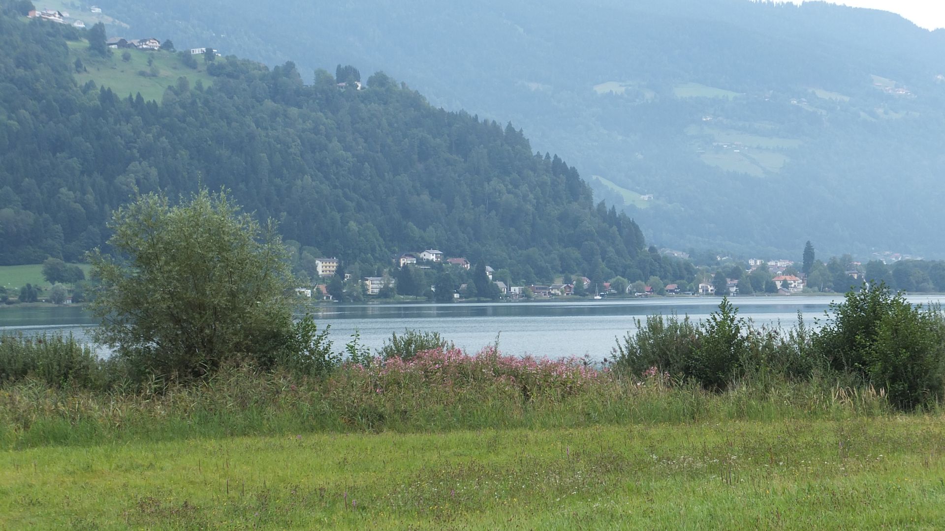 Heute war nun leider der letzte Fahrtag. Um 9 Uhr starteten wir von Villach aus zu einer Rundtour um den Ossiacher See. Schon nach wenigen Kilometern erreichten wir das Südufer des Sees. Hier war das Ufer nicht so zugebaut wie das am Wörthersee. Von der Straße aus hatte man meist einen freien Blick aufs Wasser und auf das gegenüberliegende Ufer. Heute war es etwas bedeckt, aber trocken. Es war angenehmes Radwetter. Viele Campingplätze lagen direkt am Wasser. Auch Hotels, Gaststätten und Pensionen waren reichlich vorhanden. Die Gegend lebt nun mal vom Tourismus. Hier waren die Unterkünfte aber sicherlich erschwinglicher als am Wörthersee. Mir gefiel es hier auch deshalb besser, weil es nicht ganz so überlaufen war.