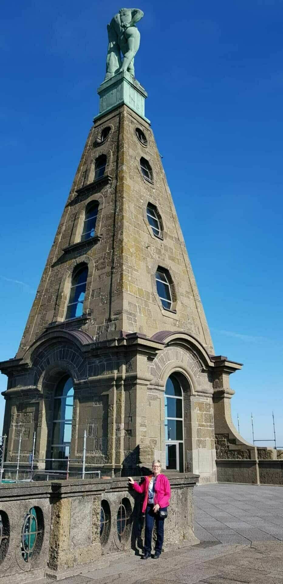Für heute war Ruhetag angesagt. Wir sind zwar nicht radgefahren, aber auf der faulen Haut gelegen haben wir auch nicht. Der Wecker klingelte wie fast immer in dieser Woche um 8 Uhr. Zuerst zahlten wir unsere Rechnung und frühstückten dananch in Ruhe. Anschließend machten wir uns zu Fuß auf ins Stadtzentrum. Im Hellen sah die Welt schon wieder harmloser aus. Zuerst bummelten wir durch einige Geschäfte, schauten mal hier mal dort. In einer Bäckerei aßen wir eine Kleinigkeit und standen dann um 12.40 Uhr auf dem Parktplatz am Staatstheater. Pünktlich ging es von hier aus mit einem Doppeldeckerbus auf Stadtrundfahrt. Die Fahrt führte an der Orangerie und am Auebad vorbei hinauf zum Bahnhof Wilhelmshöhe. Danach gings weiter zum Schloß Wilhelmshöhe und dann hinaus aus der Stadt durch ein Waldgebiet zum Herkules. Hier hatten wir eine halbe Stunde Aufenthalt. Die Zeit nutzten wir für einen kurzen Aufstieg auf den Sockel des Herkules. Von hier oben hat man eine tolle Aussicht über ganz Kassel und auf den Bergpark Wilhelmshöhe, der seit 2013 als UNESCO Weltkulturerbe anerkannt ist. Leider fanden an diesem Tag keine Wasserspiele statt. Das Wasser fließt dann in Kaskaden vom Herkules 12km zum Schloß Wilhelmshöhe hinunter. Um die Wasserspiele zu sehen muß man an bestimmten Tagen kommen und viel Zeit mitbringen. Wir fuhren danach mit dem Bus zurück zum Staatstheater. Auf der Fahrt erhielten wir viele Informationen zur Stadtgeschichte und zu verschiedenen Sehenswürdigkeiten. Im Gegensatz zu den kleinen Städten, die wir auf unserer Tour kennengelernt hatten, gab es in Kassel nur sehr wenige historische Gebäude. Die Stadt wurde in der Nacht vom 22.-23.10.1943 zu 80% zerstört. Sie wurde später im Stil der 1950er Jahre wieder aufgebaut. Heute besitzt Kassel den Titel UNESCO Weltkulturerbe zum einen durch die Brüder Grimm, die lange Zeit hier lebten, Märchen "sammelten" und aufschrieben und zum anderen wegen des Wasserparks Wilhelmshöhe. In Kassel findet alle fünf Jahre die Documenta statt. Es ist eine der weltweit bedeutenden Ausstellungen für zeitgenössiche Kunst. Sie dauert jeweils 100 Tage. Nach der Stadtrundfahrt machten wir eine Pause in Deutschlands erster Einkaufsstraße / Fußgängerzone, der Treppenstraße. Wir genossen unseren Eiscafe in der ungewöhnlich warmen Oktobersonne und beobachteten das Treiben um uns herum. Danach machten wir noch einen kurzen Einkaufsbummel. Gegen 18.30 Uhr genossen wir bei einem guten Italiner unser letzte gemeinsames Abendessen auf dieser Tour. Um 20 Uhr gingen wir dann ins Kino. Dort lief der Film: Ballon. Obwohl wir das Ende kannten, fieberten wir mit und waren erleichtert, als die beiden Familien ihre Flucht über die innerdeutsche Grenze heil überstanden hatten. Danach fuhren wir mit der Straßenbahn zurück in unser Hotel. Die letzten Meter gingen wir mit einem mulmigem Gefühl, zumal wir noch durch eine Unterführung gehen mußten und die Gegend nicht sehr "fein" war.