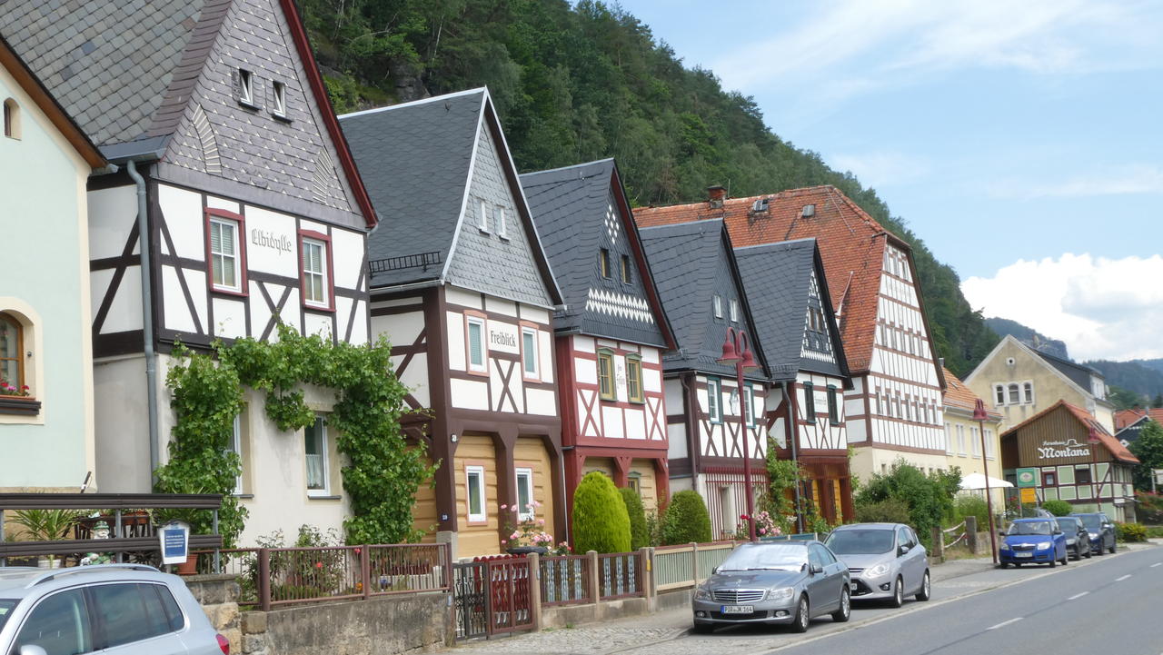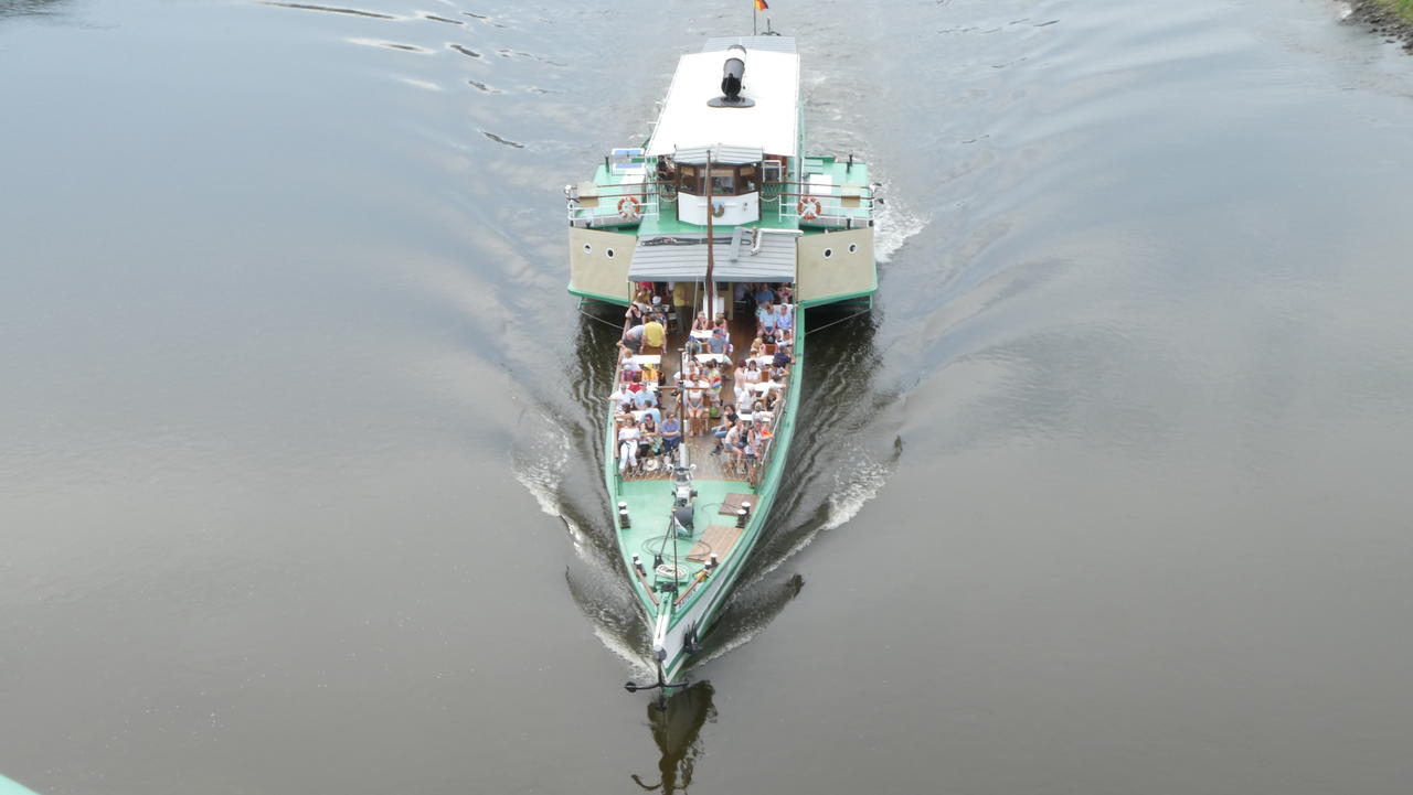 Es gab einige kleine Personenfähren. In Schmilka setzten wir auf die andere Seite über, da wir gerne noch nach Bad Schandau wollten. Dort machten wir dann noch eine gemütliche Eispause, bevor es auf die letzten Kilometer ging. Um 17 Uhr erreichten wir unser Etappenziel in Königstein. In einem Gasthof mit Blick auf die Feste Königstein aßen wir gut zu Abend und übernachteten dort auch. Danach machten wir eine kleine Runde durch den Ort.