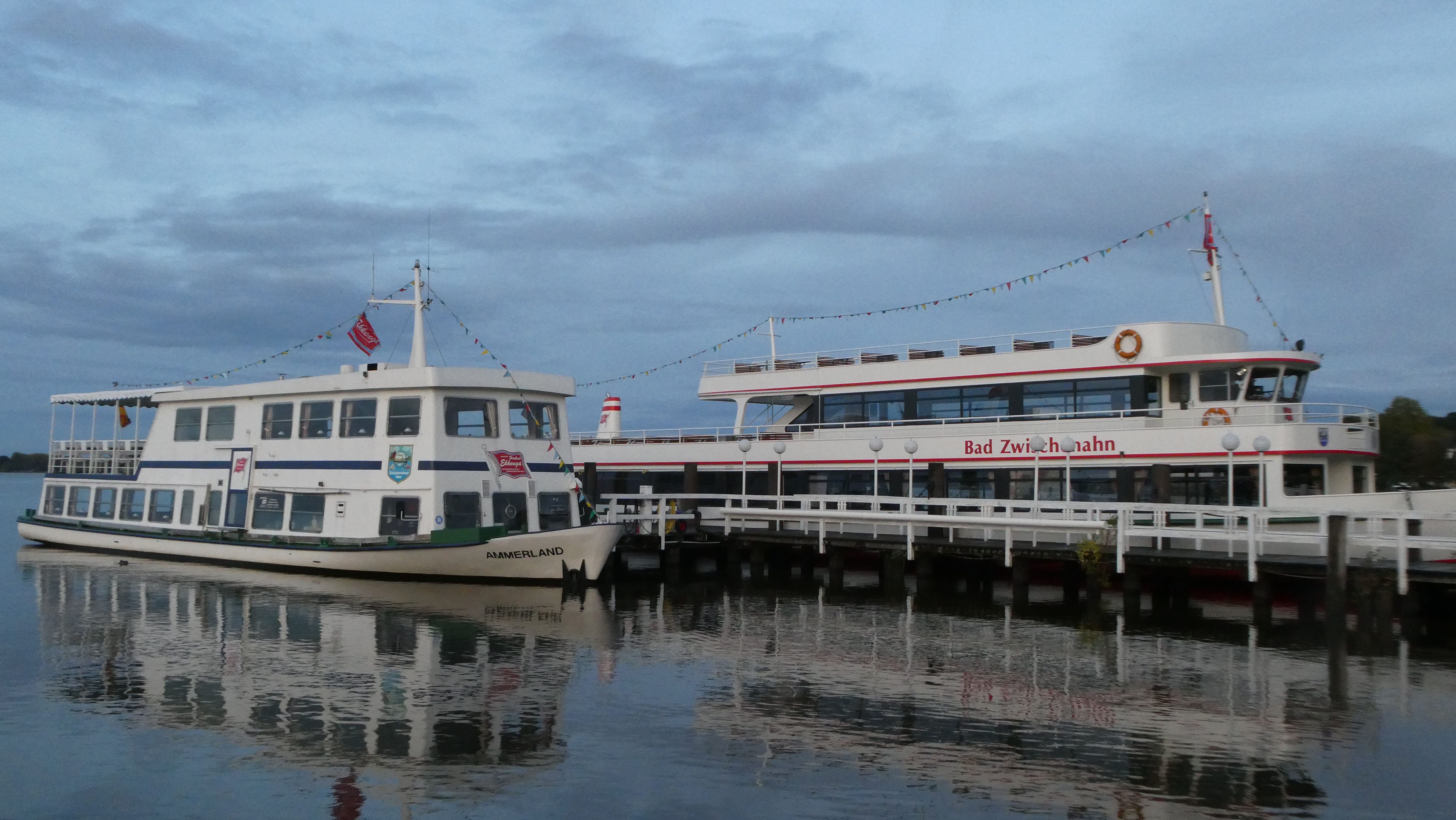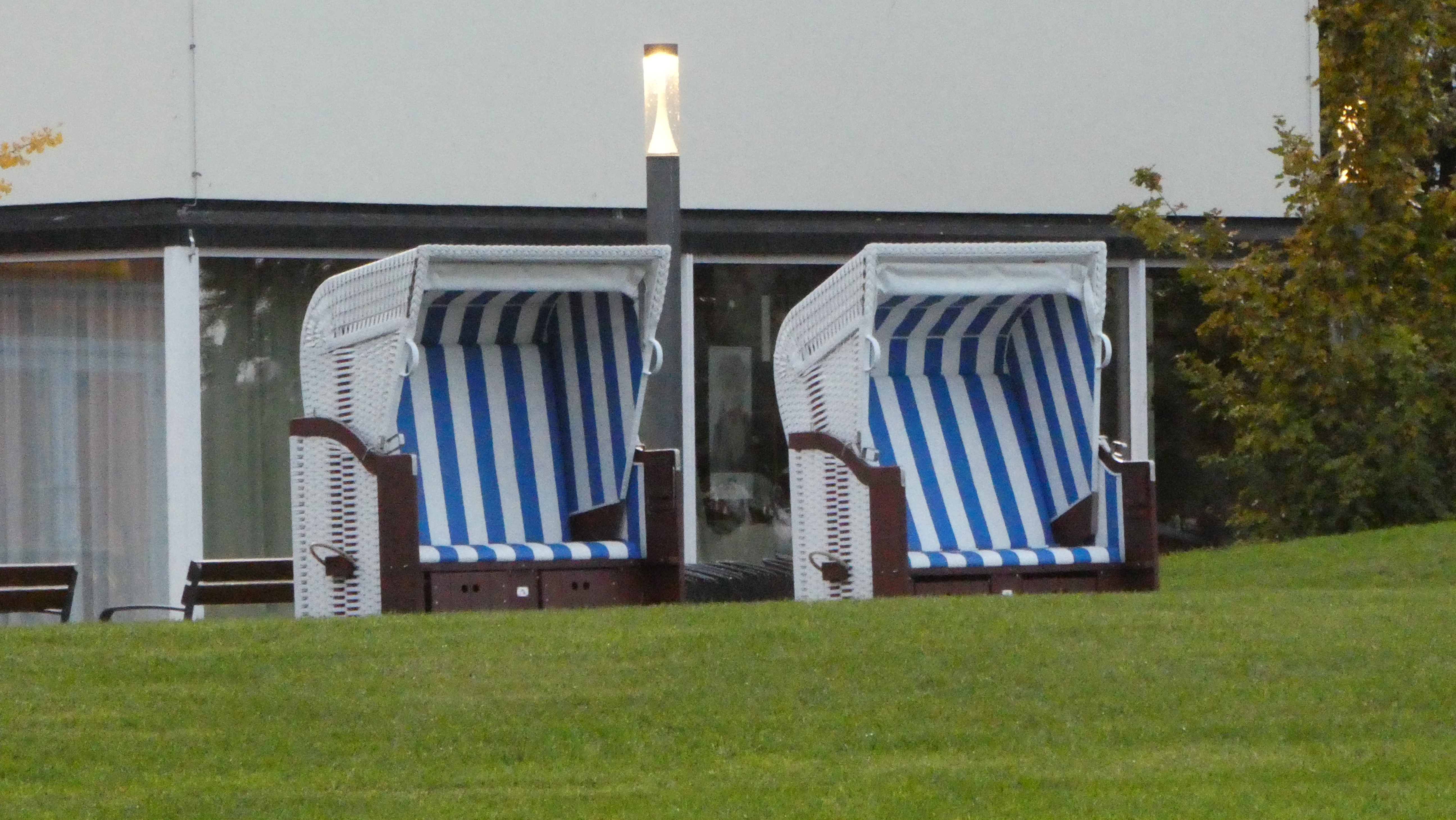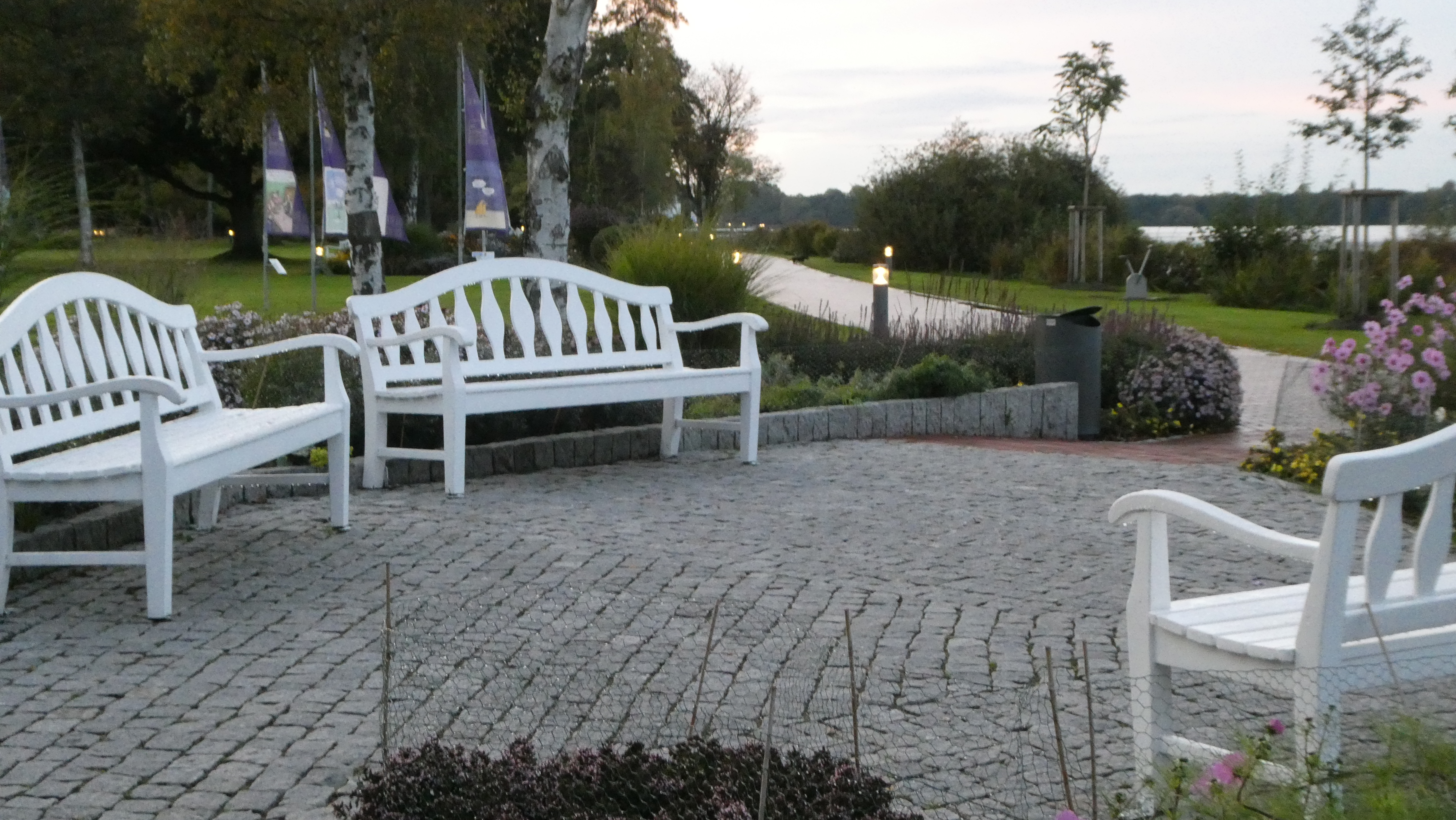 Gegen 17 Uhr erreichten wir unser Hotel direkt am See. Nun hörte auch der Regen wieder auf. Wir brachten nur kurz das Gepäck aufs Zimmer und gingen zum schönen Strandpark. Hier hatten wir einen herrlichen Blick auf den See und die beiden Ausflugsschiffe, die am Ufer lagen. Wir machten noch einen Schlenker am kleinen Freilichtmuseum vorbei, bevor wir zurück zum Hotel gingen. So hatten wir vor Einbruch der Dunkelheit noch einen kleinen Eindruck vom Kurgebiet der Stadt bekommen.