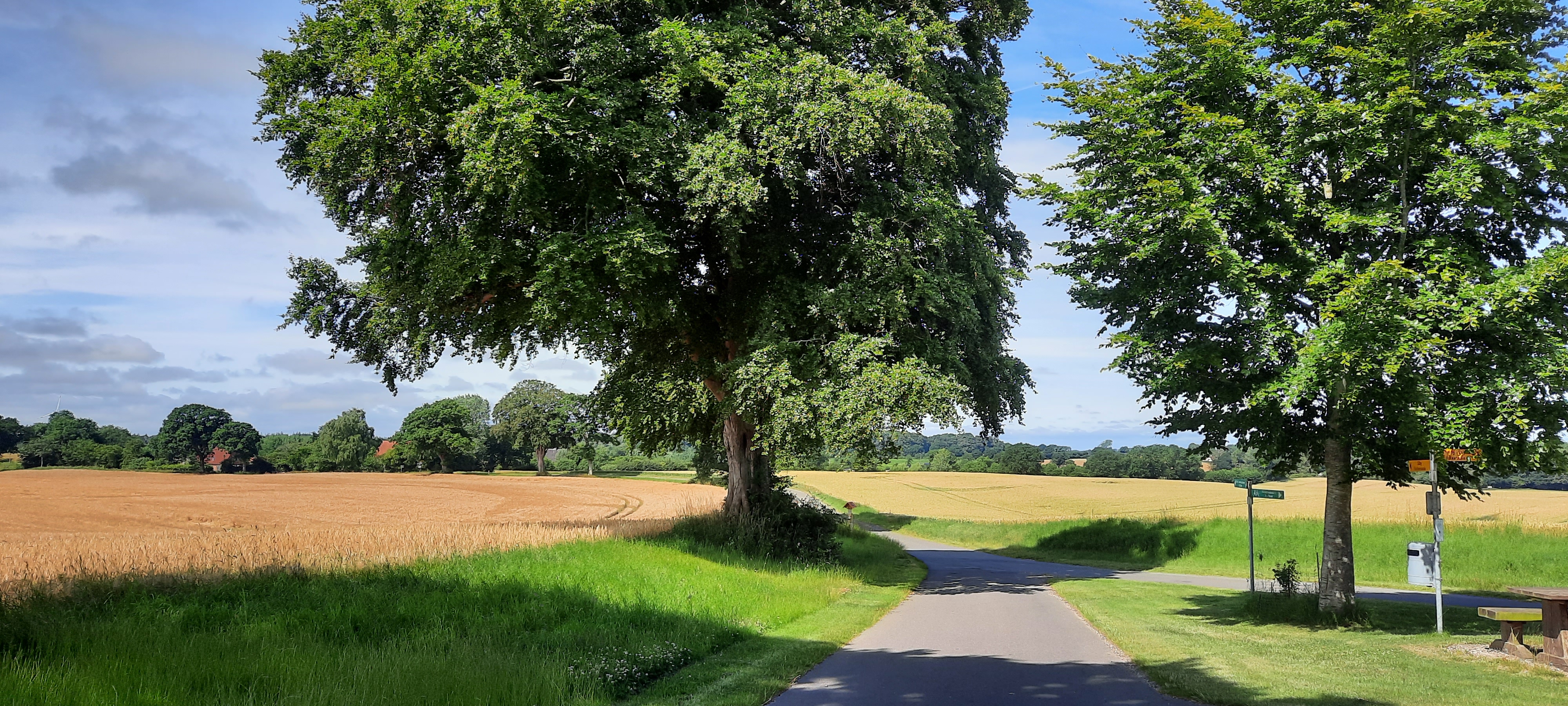 Gegen 10.30 Uhr saßen wir auf den Rädern. Über die Dörfer ging es bis Waabs. Dort erreichten wir wieder den Ostseeküstenradweg. Das Wetter war wieder passend zum Radfahren, blauer Himmel, ein paar weiße Wolken, warm, aber nicht zu heiß und trocken. Der Wind war nicht nennenswert und blies auch aus der richtigen Richtung. Außerdem hatten wir ja noch, besonders um das Gewicht des Gepäcks auszugleichen, die Elektrounterstützung.