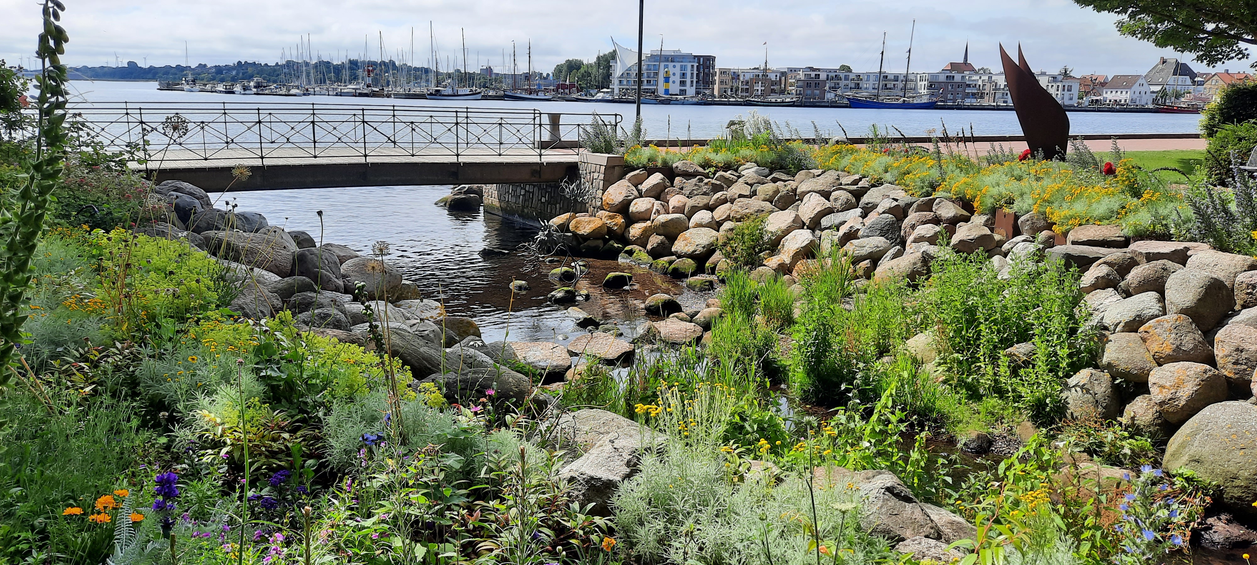 Gegen Mittag erreichten wir die Stadt. In einem kleinen Park an der Eckernförder Bucht machten wir eine kleine Pause, bevor es in die Innenstadt ging. Hier war einiges los. Wir schoben unsere Räder durch die Fußgängerzone und gönnten uns vor einer Eisdiele einen dicken Eisbecher. Vor über 30 Jahren hatten wir hier zwar schon einmal unseren Urlaub verbracht, aber jetzt kaum etwas wiedererkannt.