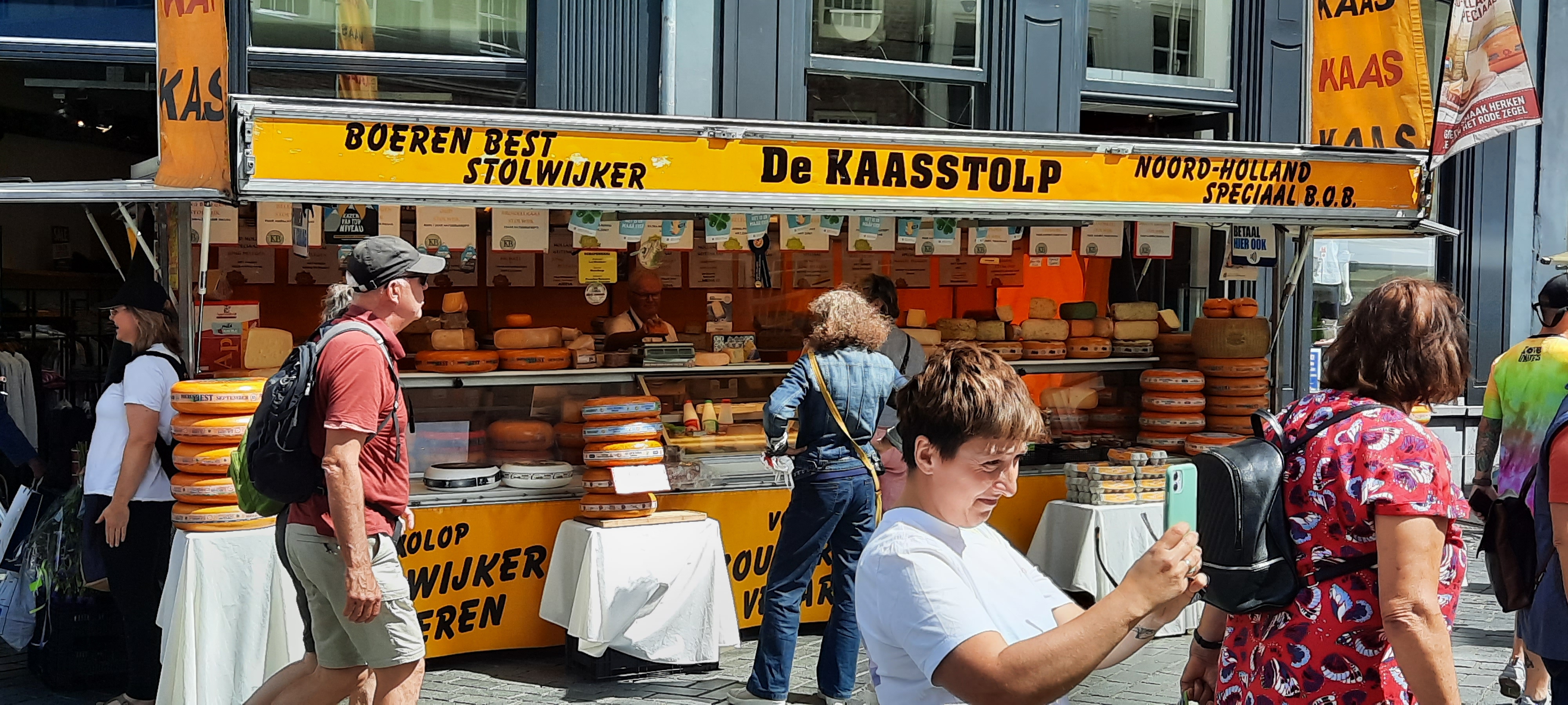 Auf einer Bank im Schatten der Sint Walburgiskerk machten wir unser Mittagspicknick. Es gab Baguette, Käse und Obst. Danach schoben wir unsere Räder durch die schöne, alte Hansestadt. Es war Markttag und es herrschte ein buntes Treiben. An den Ständen wurden die verschiedensten leckeren Sachen angeboten. Davon konnten wir auf dem Rad schlecht etwas mitnehmen. So blieb es beim Anschauen. Bevor es auf den weiteren Weg ging, gönnten wir uns in einer ruhigeren Seitenstraße einen Kaffee.