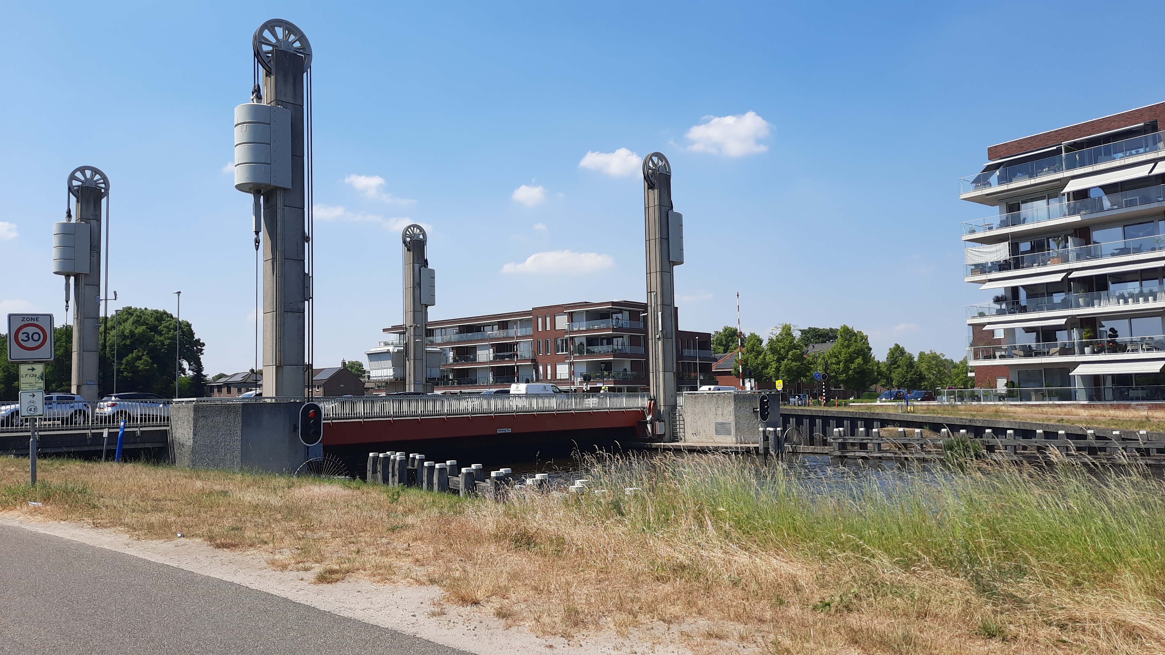 Nachdem wir die Brücke passiert hatten, ging es ein Stück direkt am Kanal entlang. Die nächste Brücke, die wir erreichten, war wieder eine Klappbrücke.