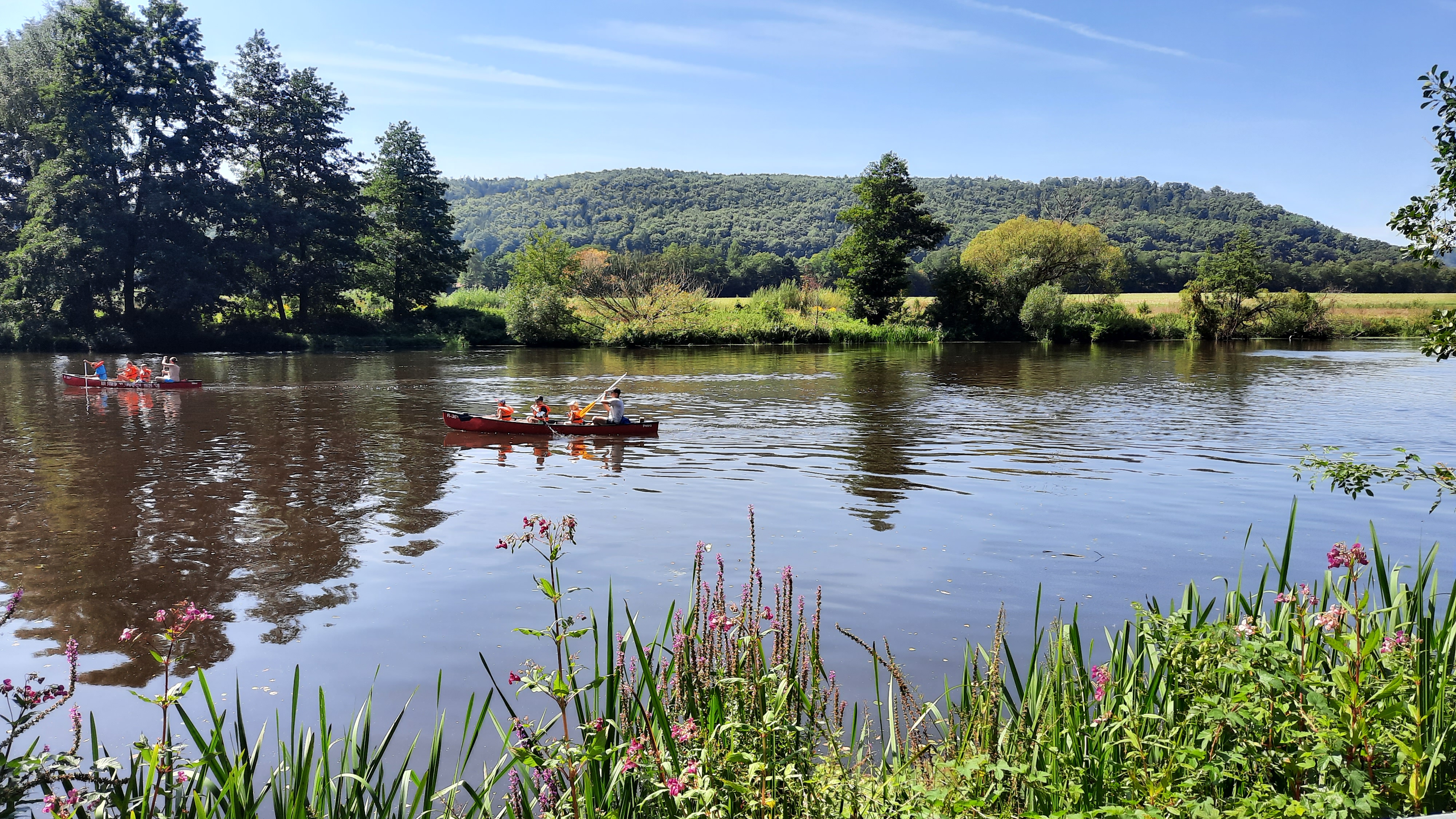 Danach überquerten wir die Naab. Von der Brücke aus konnte man den Zusammenfluß von der Vils in die Naab sehen. Auf dem Wasser tummelten sich viele Kanufahrer. Auch viele Fahrradfahrer, die meisten mit Gepäck, nutzten das schöne Wochenendwetter.