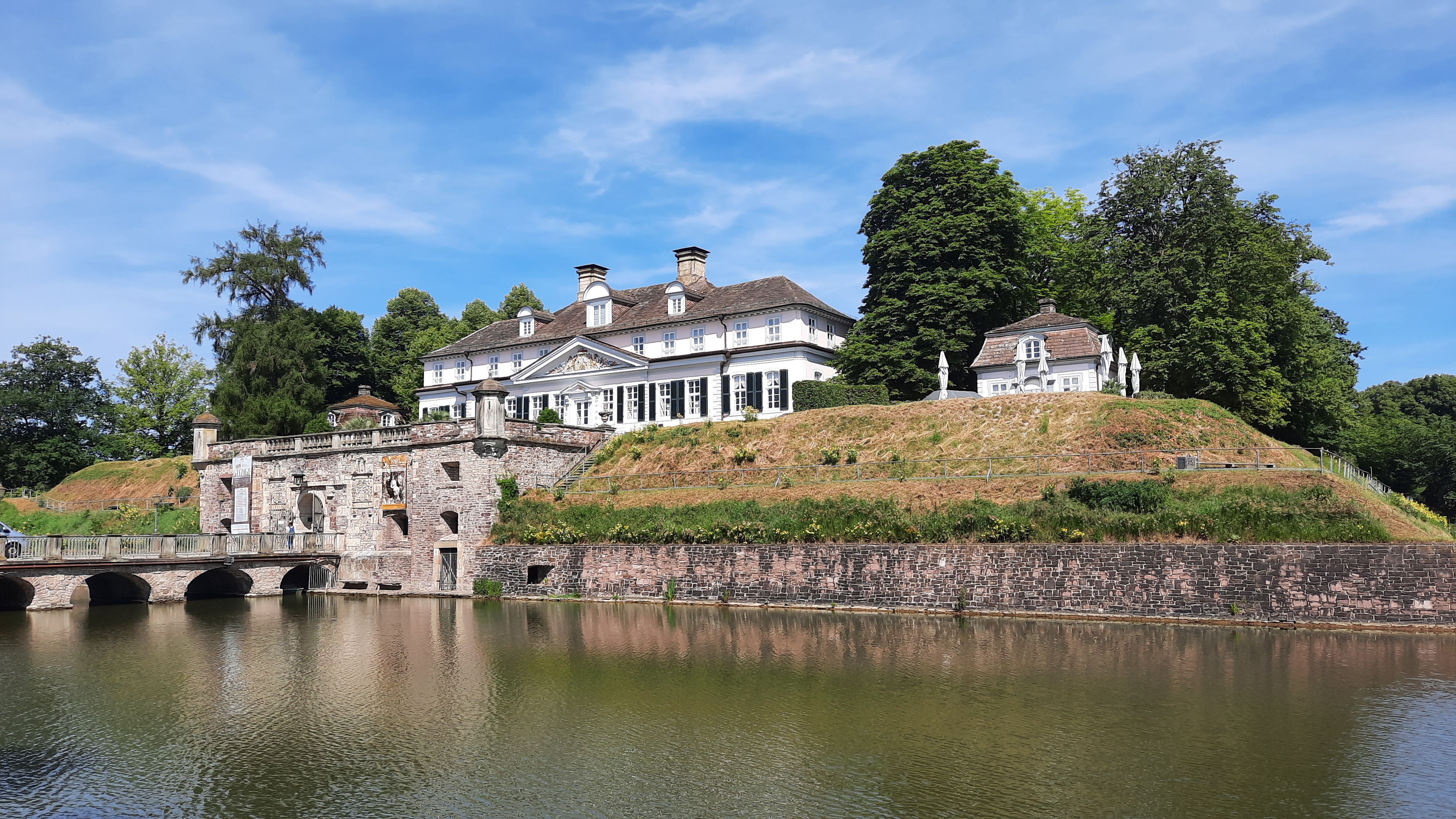Gegen 10.30 bestiegen wir die Räder. Zunächst ging es noch einmal nach Bad Pyrmont. Dort machten wir am Wasserschloß einen kurzen Fotostop. Ich hätte mir gerne mal den Kurpark angesehen. Wir wollten natürlich unsere bepackten Räder nicht unbeaufsichtigt stehen lassen und mit den Rädern an der Hand war ein Besuch nicht möglich. So mußten wir unverrichteter Dinge weiterfahren.