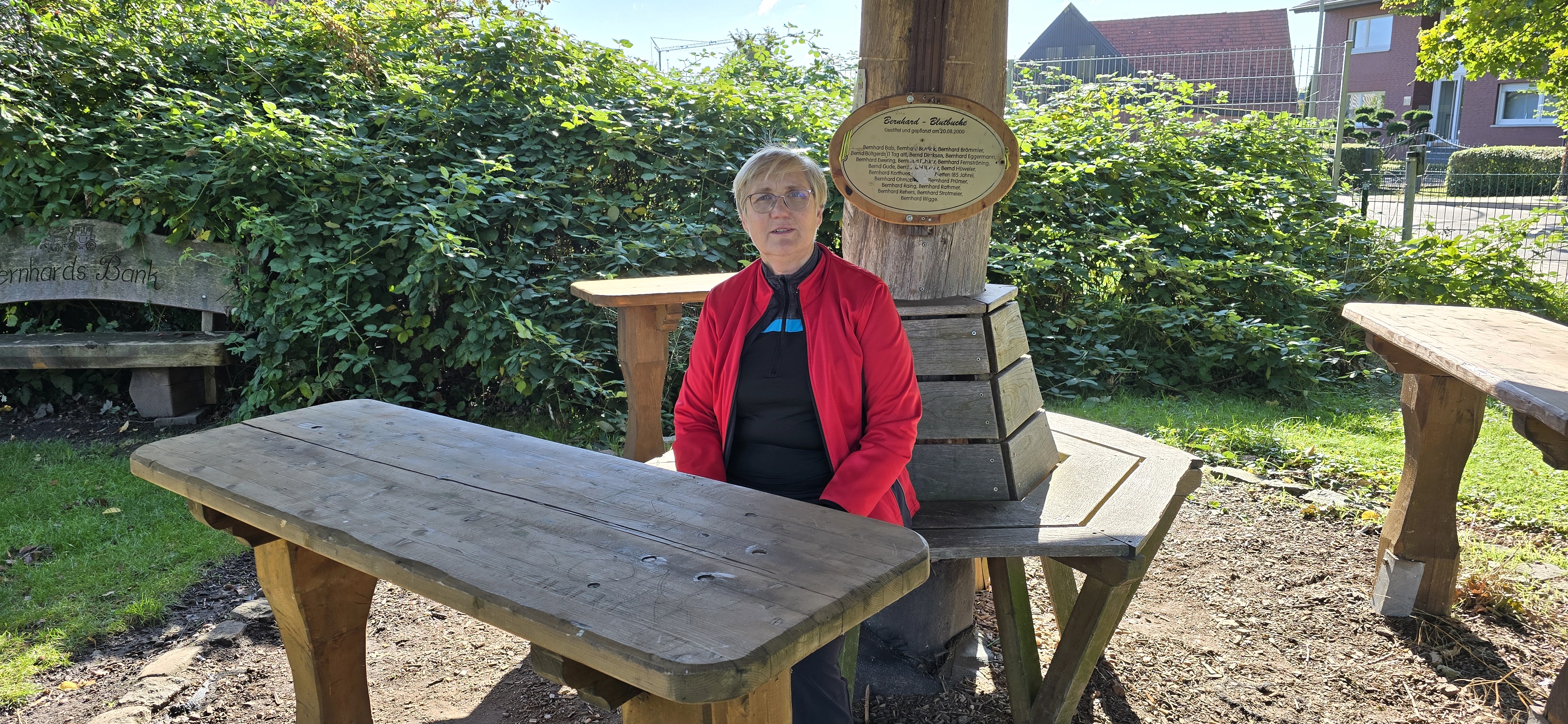 Der Weg führte über Welbergen und Wettringen über kleine Straßen und asphaltierte Feldwege. Dann begann ein wunderbarer Bahnradweg. Er war als Fahrradstraße deklariert und somit hatten wir an Kreuzungen oft Vorfahrt. Außerdem führte er häufig durch den Wald und an Feldern entlang. Mehrfach standen kleine Schutzhütten am Weg. Es war wirklich perfekt. Gegen 11.30 Uhr machten wir an so einem netten Rastplatz eine kurze Pause.