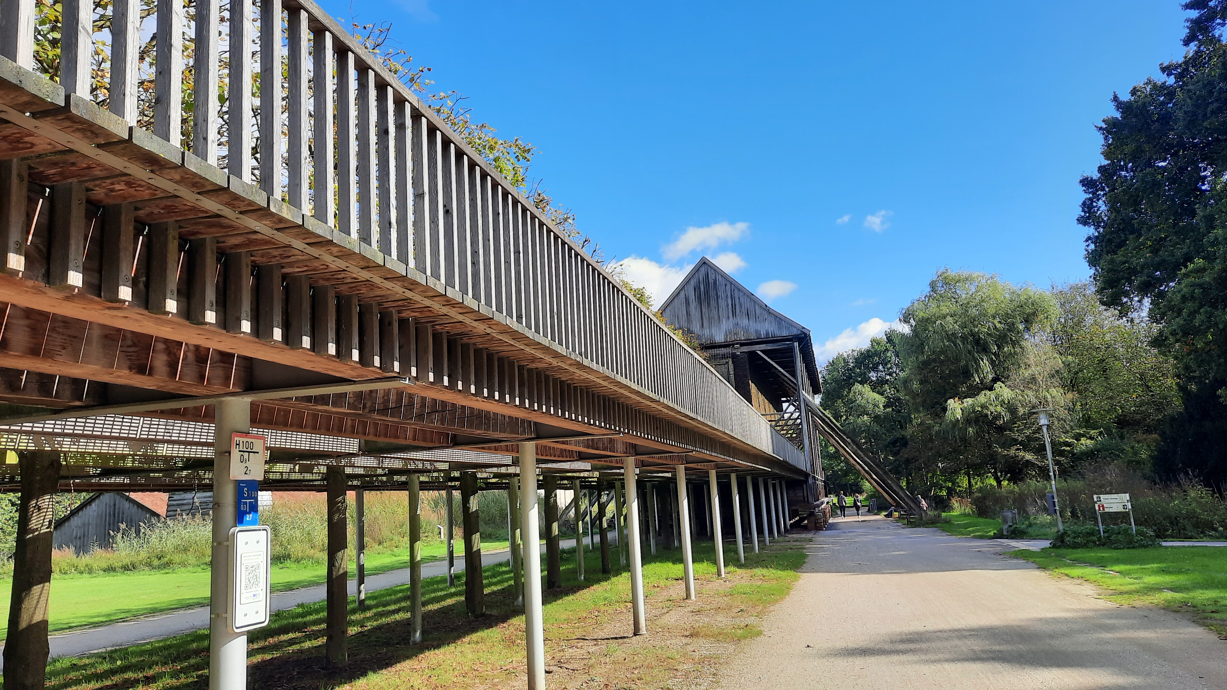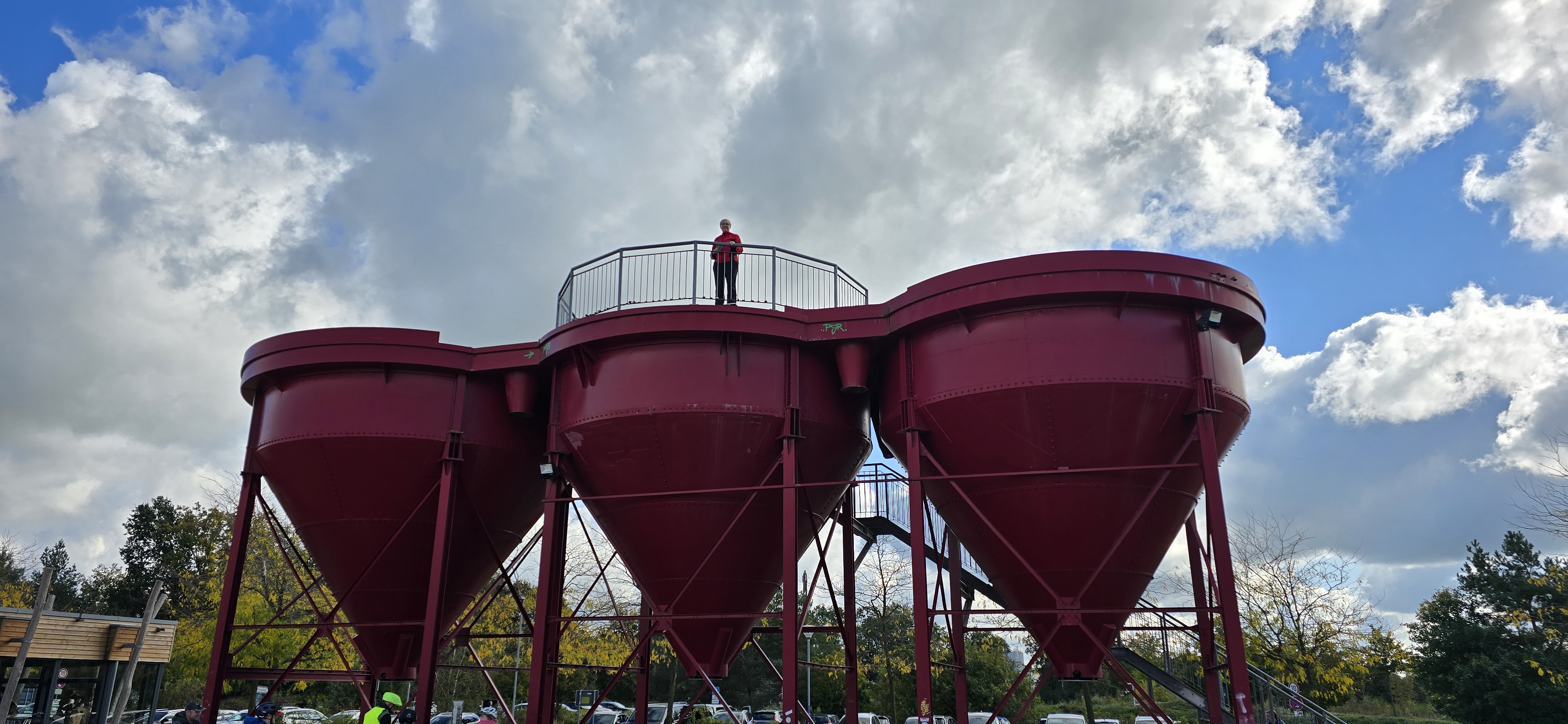Eine halbe Stunde später waren wir am Offumer See, einem ehemaligen Baggersee. In dem Ausflugslokal herrschte reger Betrieb. Das gute Wetter lud viele zu Ausflügen in die Natur ein. Ungewöhnlich ist die Aussichtsplattform über den See. Sie befindet sich auf großen Trichtersilos, in denen der Sand zwischengelagert wurde. Von dort oben machte ich ein paar Fotos. Danach setzten wir unsere Tour fort.