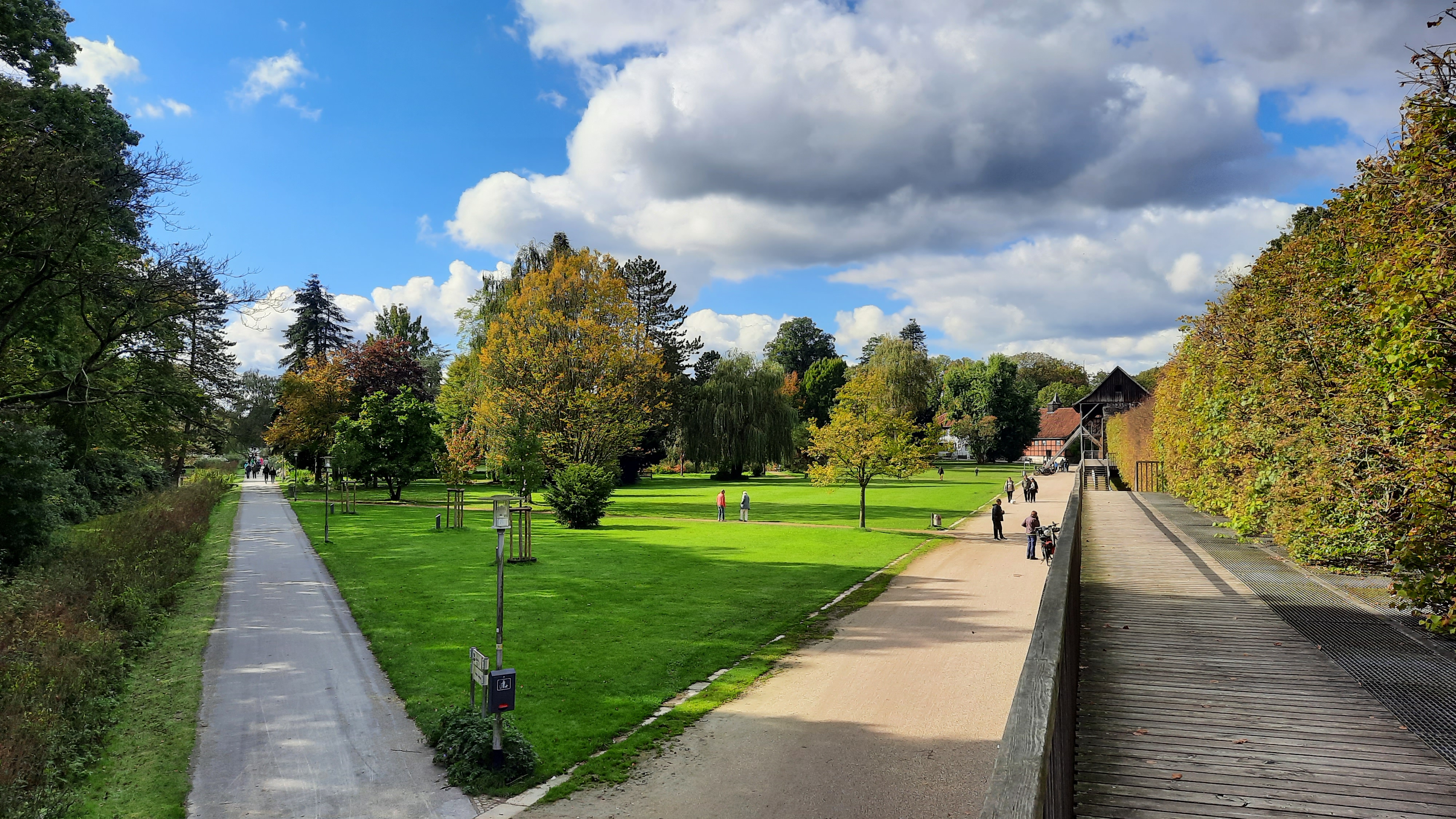 In Rheine hatten wir zunächst etwas Schwierigkeiten, den richtigen Weg zu finden. OSMAnd half und so fanden wir doch den Weg zum Salinenpark. Er liegt im Norden der Stadt. Wir machten einen kleinen Schlenker durch den großen Park. Und schoben dann die Räder zum Gradierwerk.