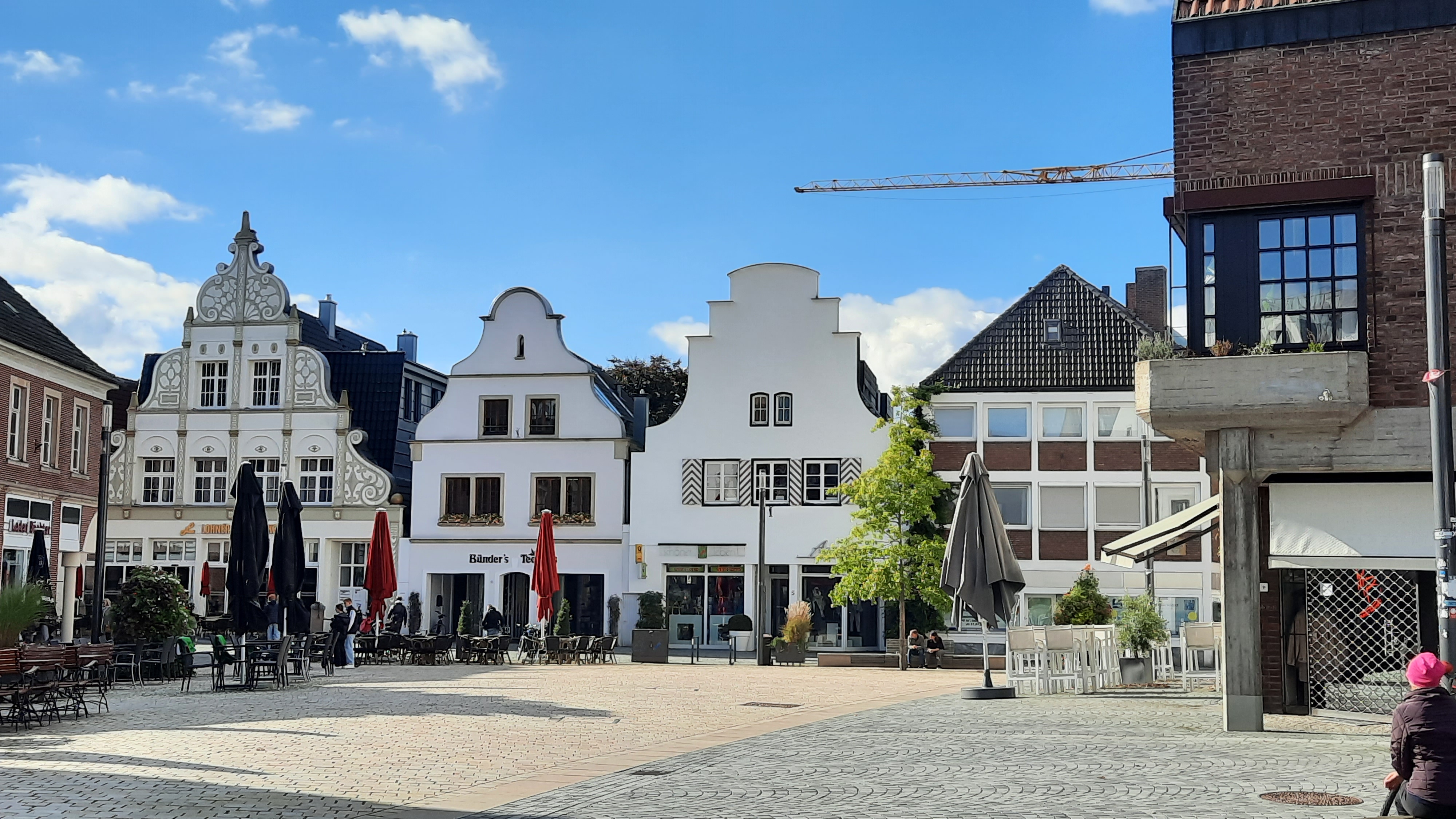 Am Marktplatz an der Dionysiuskirche befanden sich einige Restaurants, die aber größtenteils unverständlicher Weise heute geschlossen hatten. Wir machten ein paar Fotos von den schönen Häusern und fanden in einer Seitenstraße doch noch ein Café. Dort gönnten wir uns einen leckeren Apfelstrudel.
